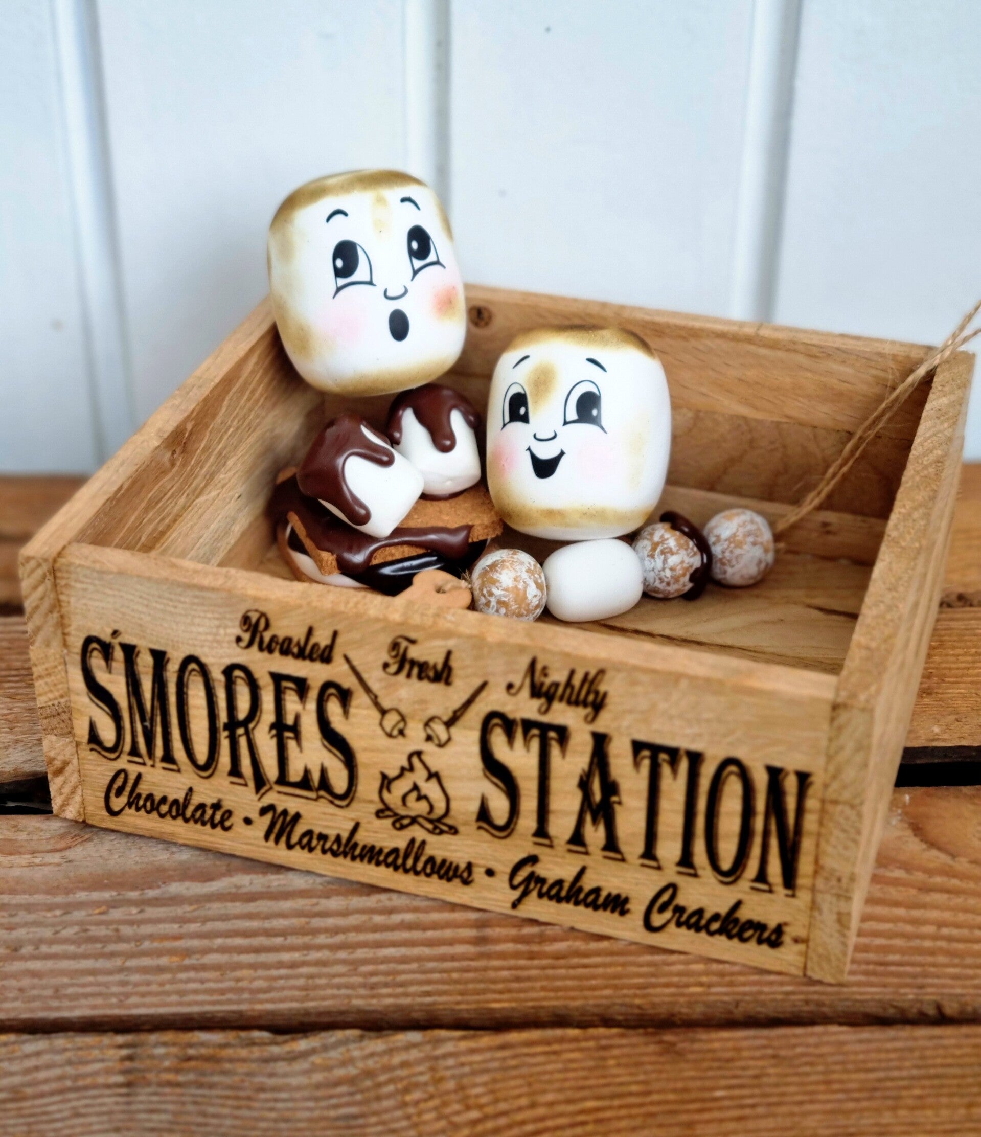 Aus Eichenholz Natur mit einer Weihnachtlichen Laser Gravur in Smore Marshmallow Themen.
