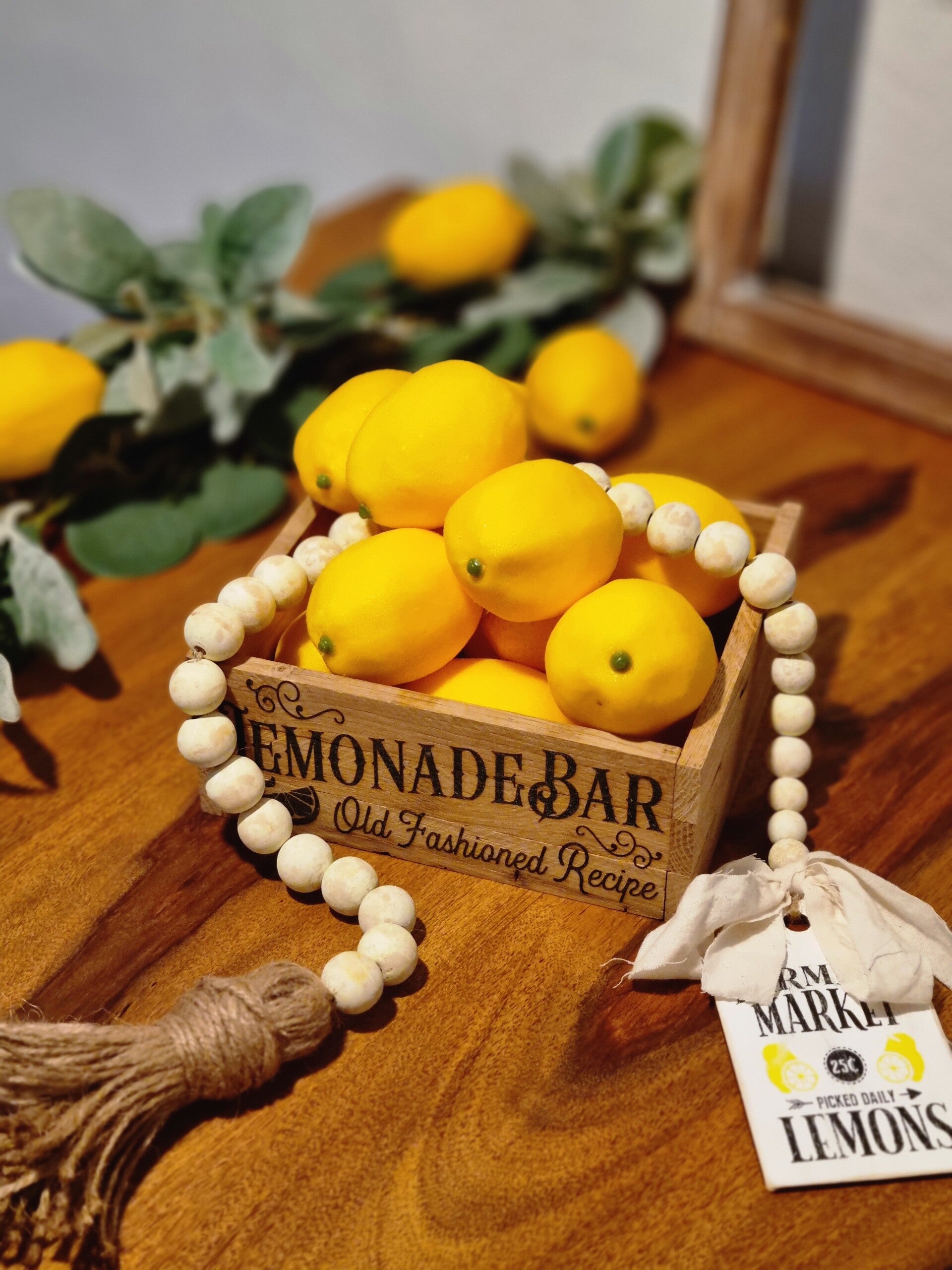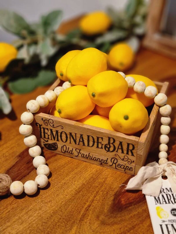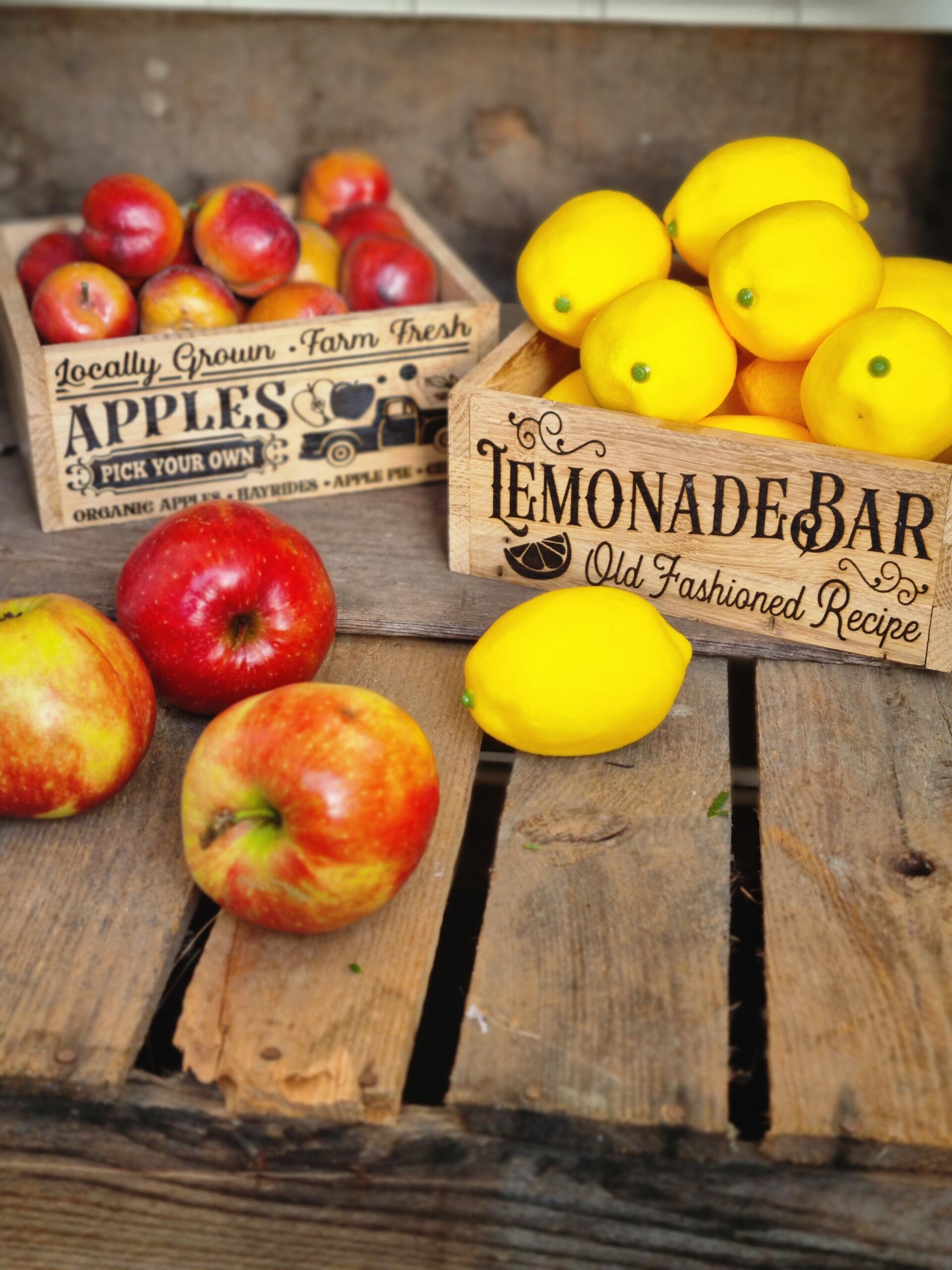 Holzkiste aus Eichenholz Natur mit Laser Gravur in Lemonaden Thema.