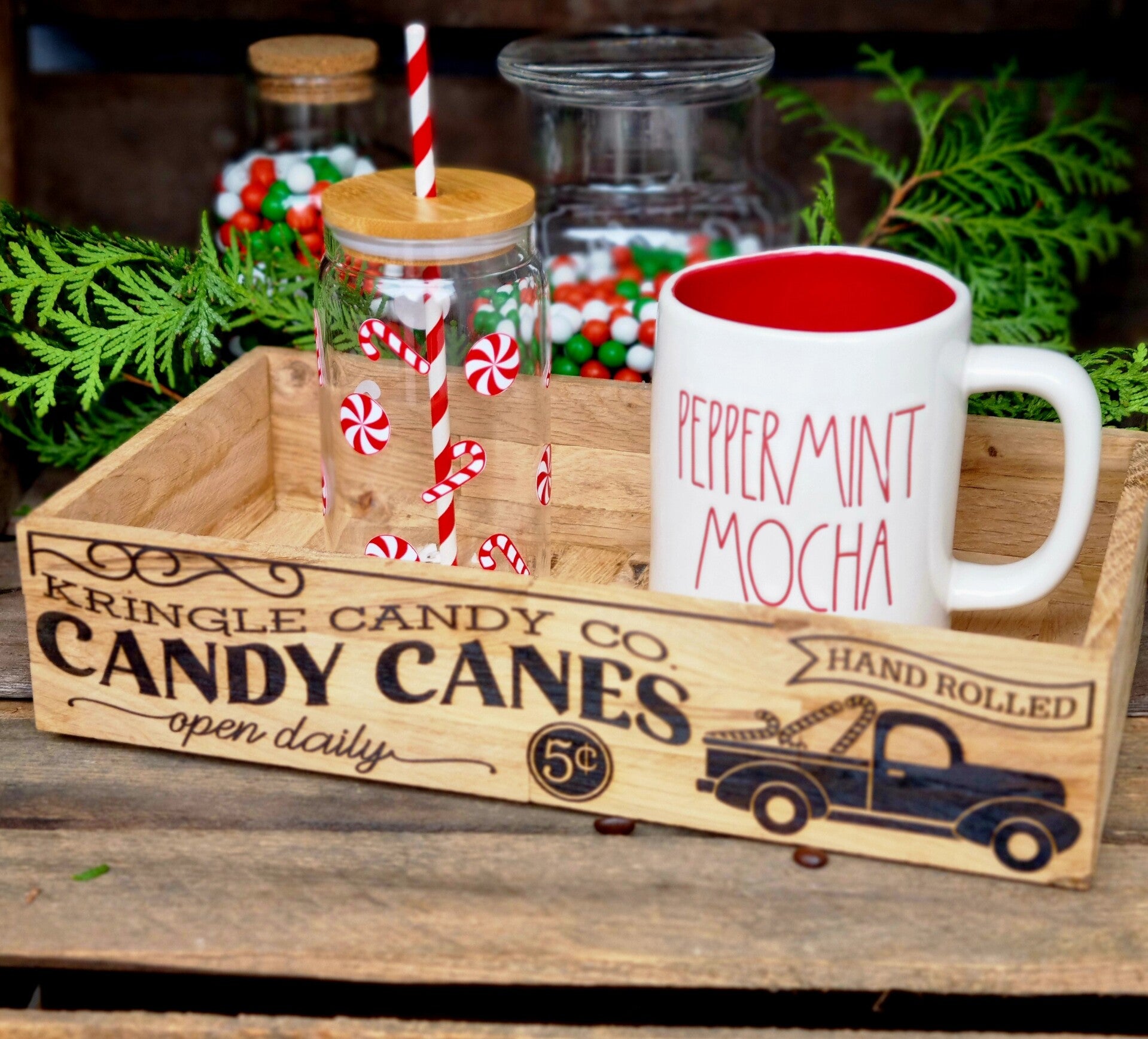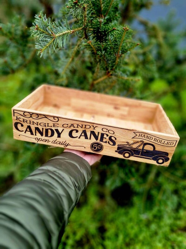 Laser Gravur in candy cane Thema, perfekt für Weihnachts Dekoration.
