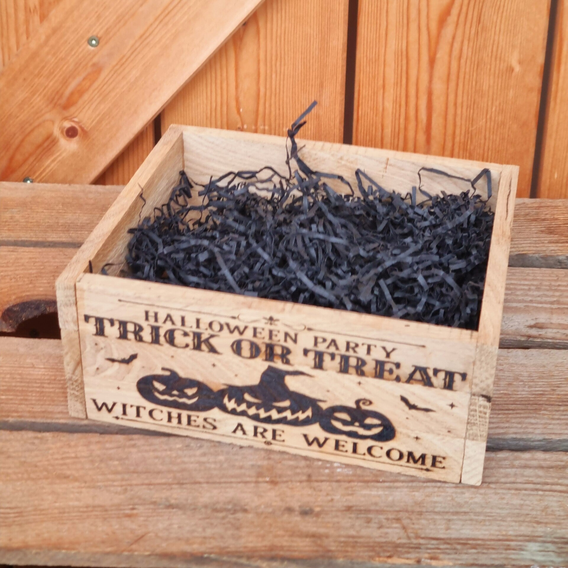 Farmhaus Holzkiste Trick or Treat