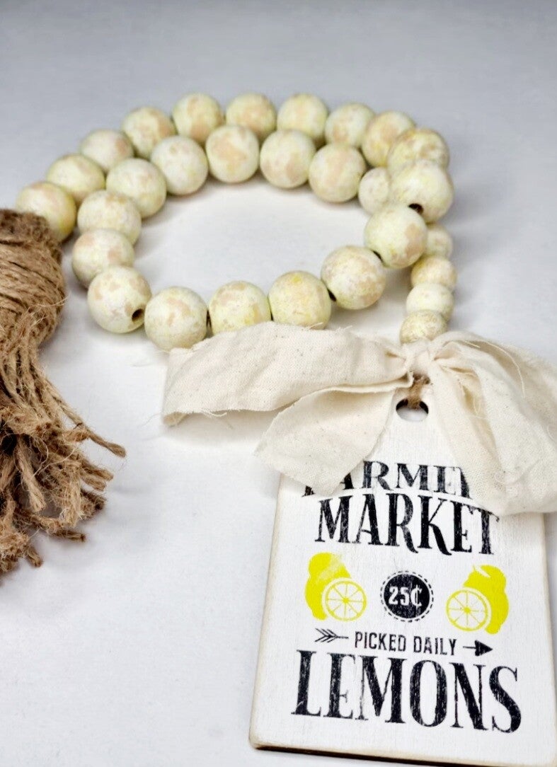 Sowohl die Holzperlen wie auch das Anhänger Schild.