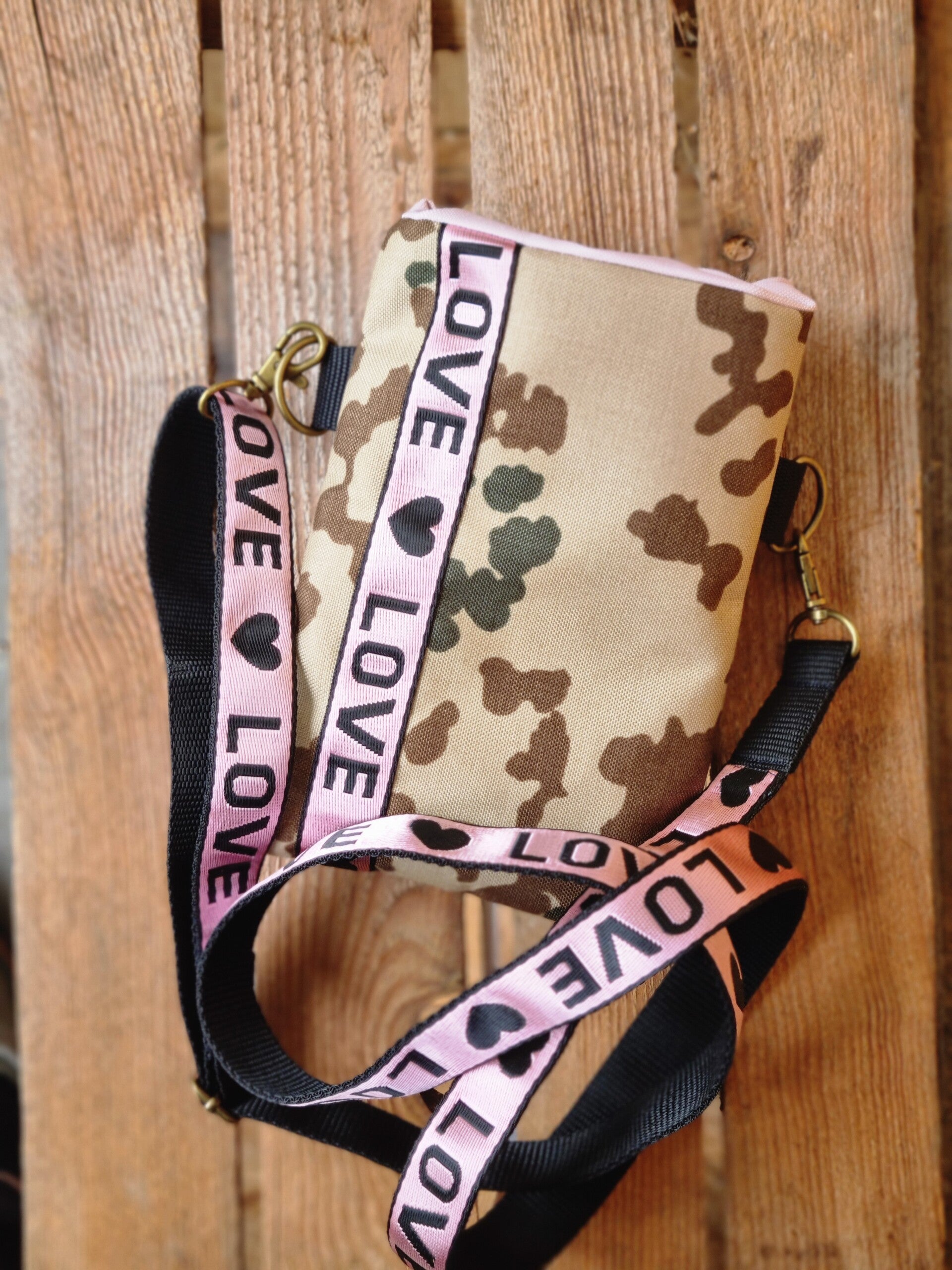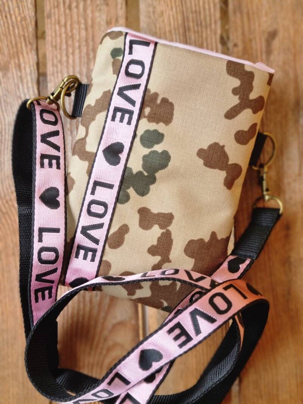 Mit verstellbarem Schulter Gurt in einem coolem Look, passend zu der Taschen Applikation.