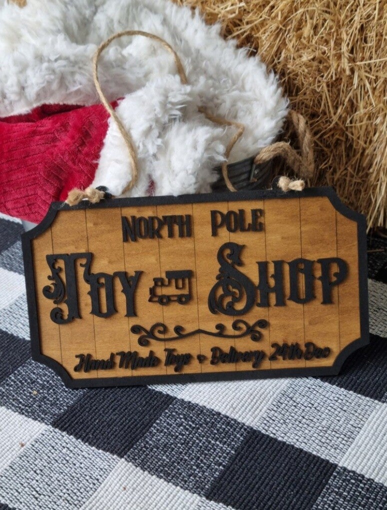 Wunderschön, Nostalgisch ,wer kennt nicht die amerikanische Movies zu Weihnachts Zeit mit Spielzeug Läden.Dieses Schild erinnert mich einfach nur an den Zauber der Weihnachten.36 cm breit, 20 cm hoch.Zum hinstellen oder Aufhängen.