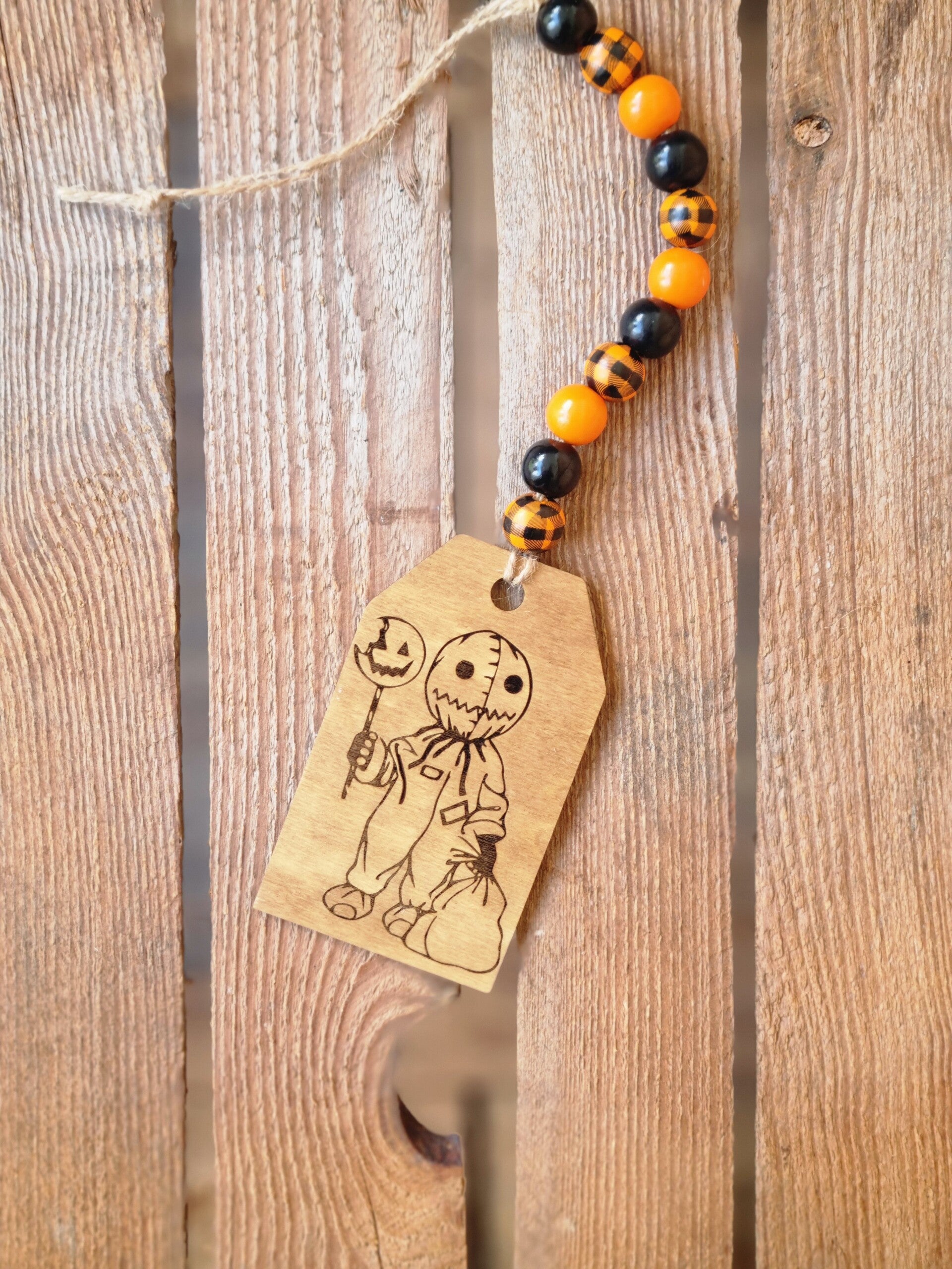Ein Holzperlen Anhänger mit Sam aus Trick or Treat.