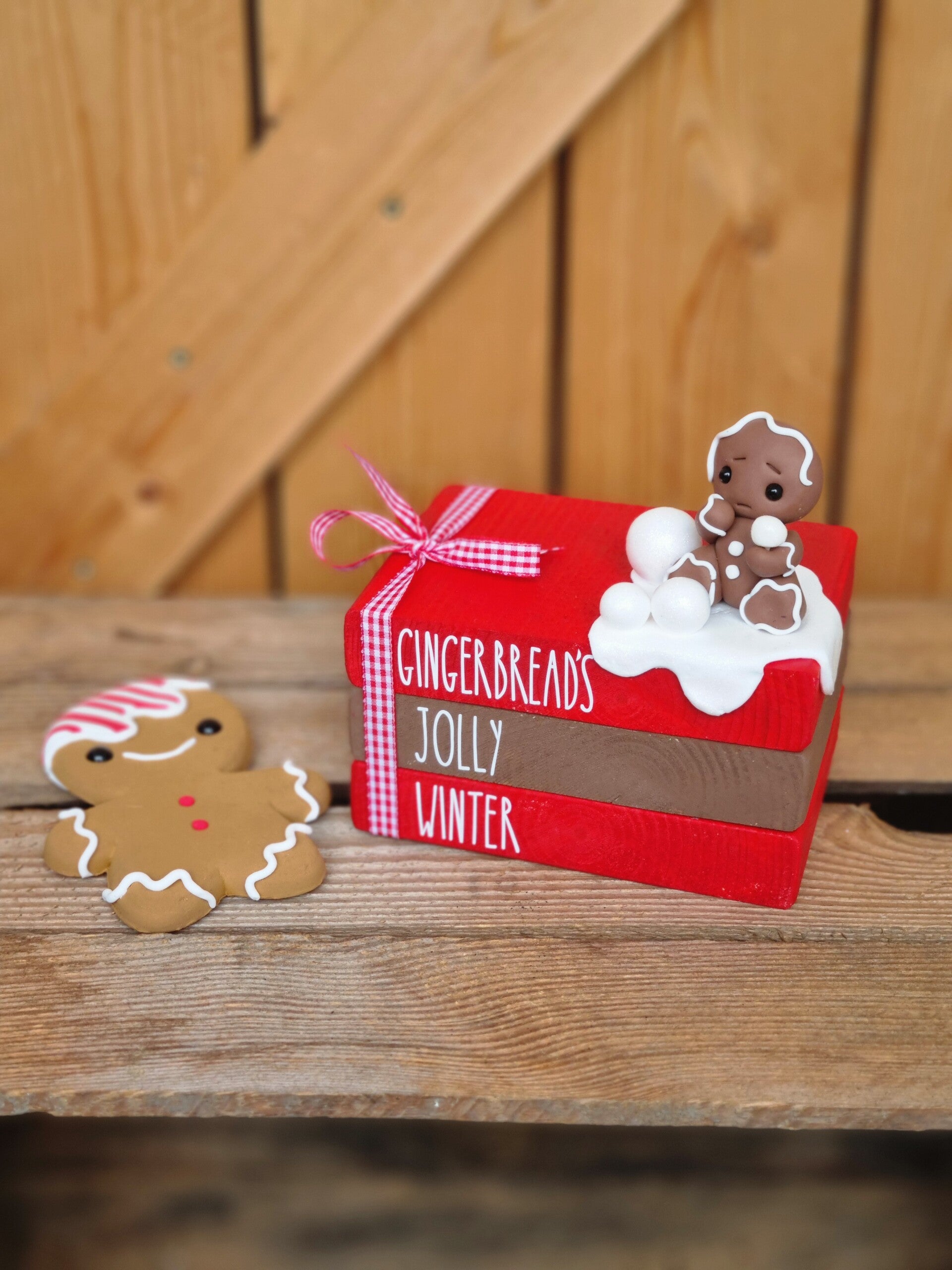 Ein süßer Bücherstapel in 14 cm x 10 cm x 8 cm .Ein Lebkuchen Männchen in Schneeschlacht 😆😆😉😉.