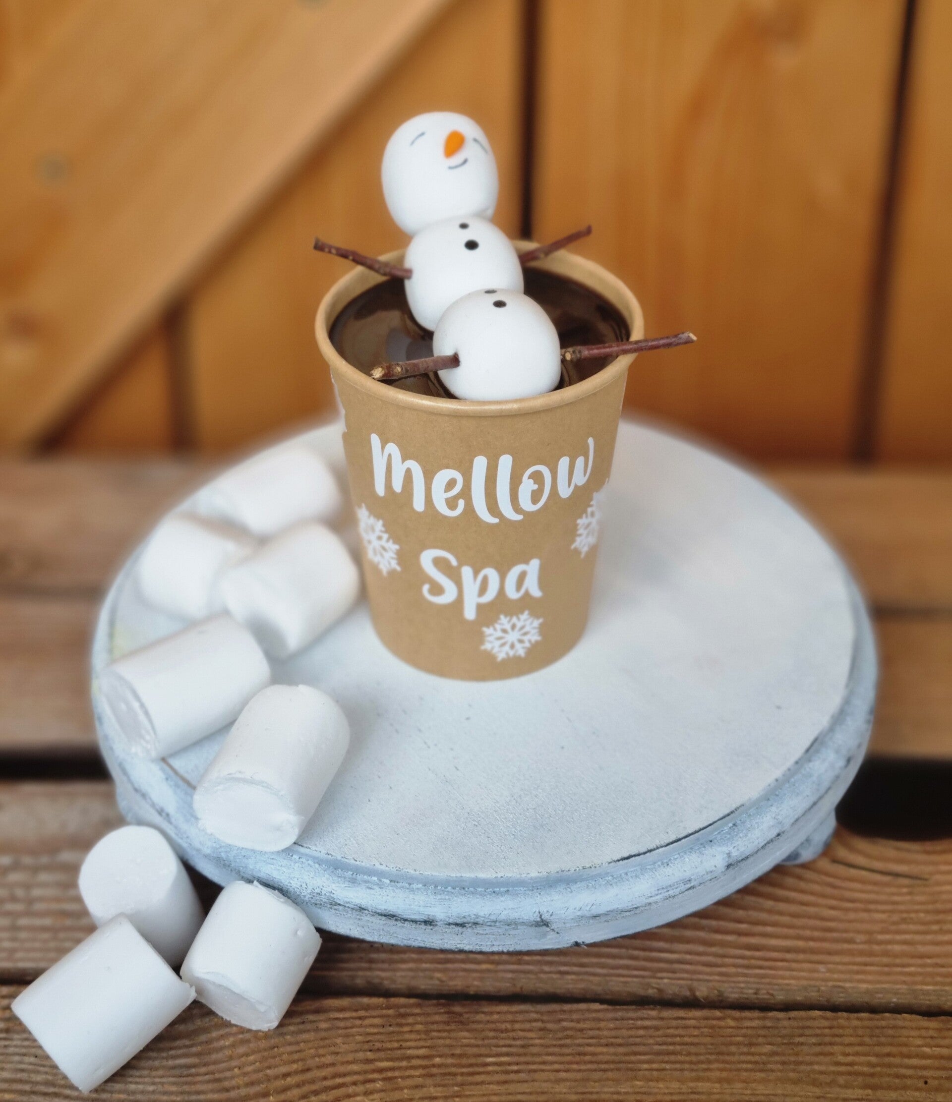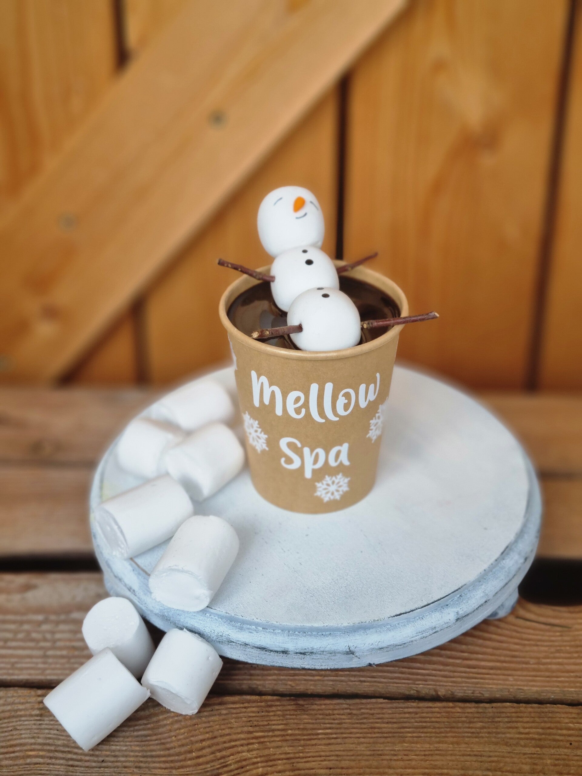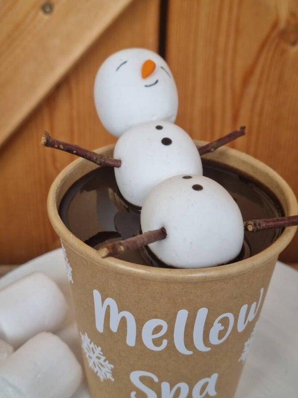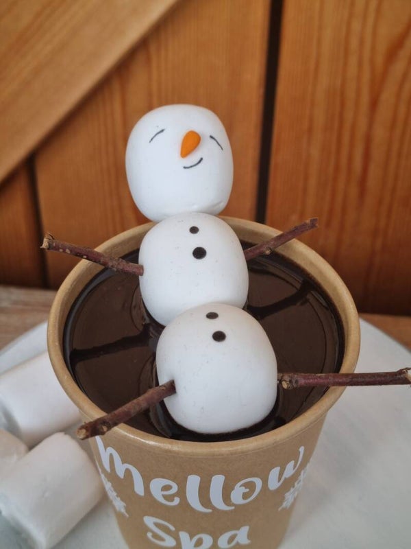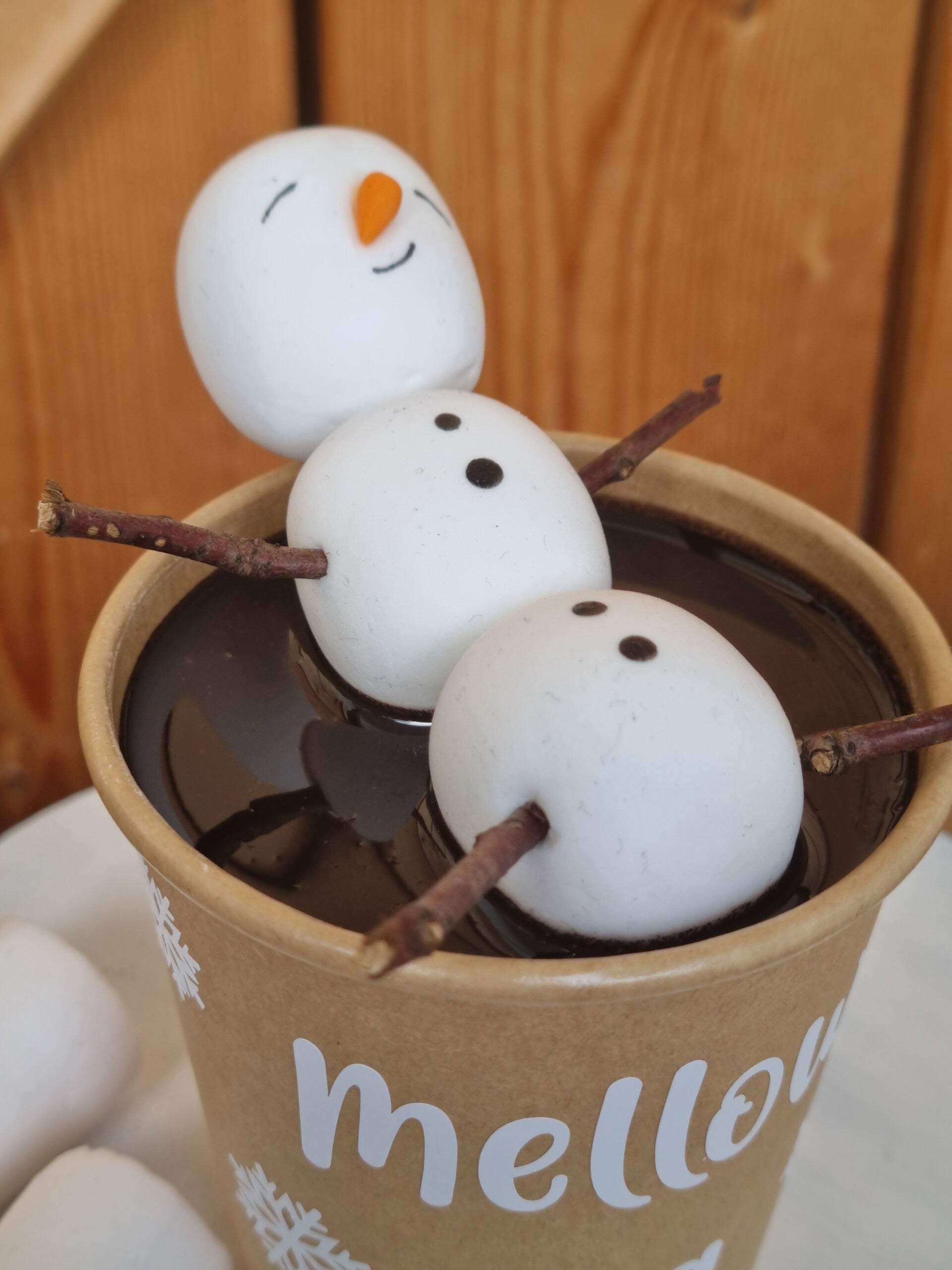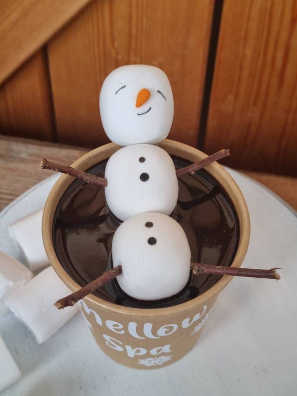 Ein Marshmallow Männchen in einem 300 ml Becher mit Schokolade.