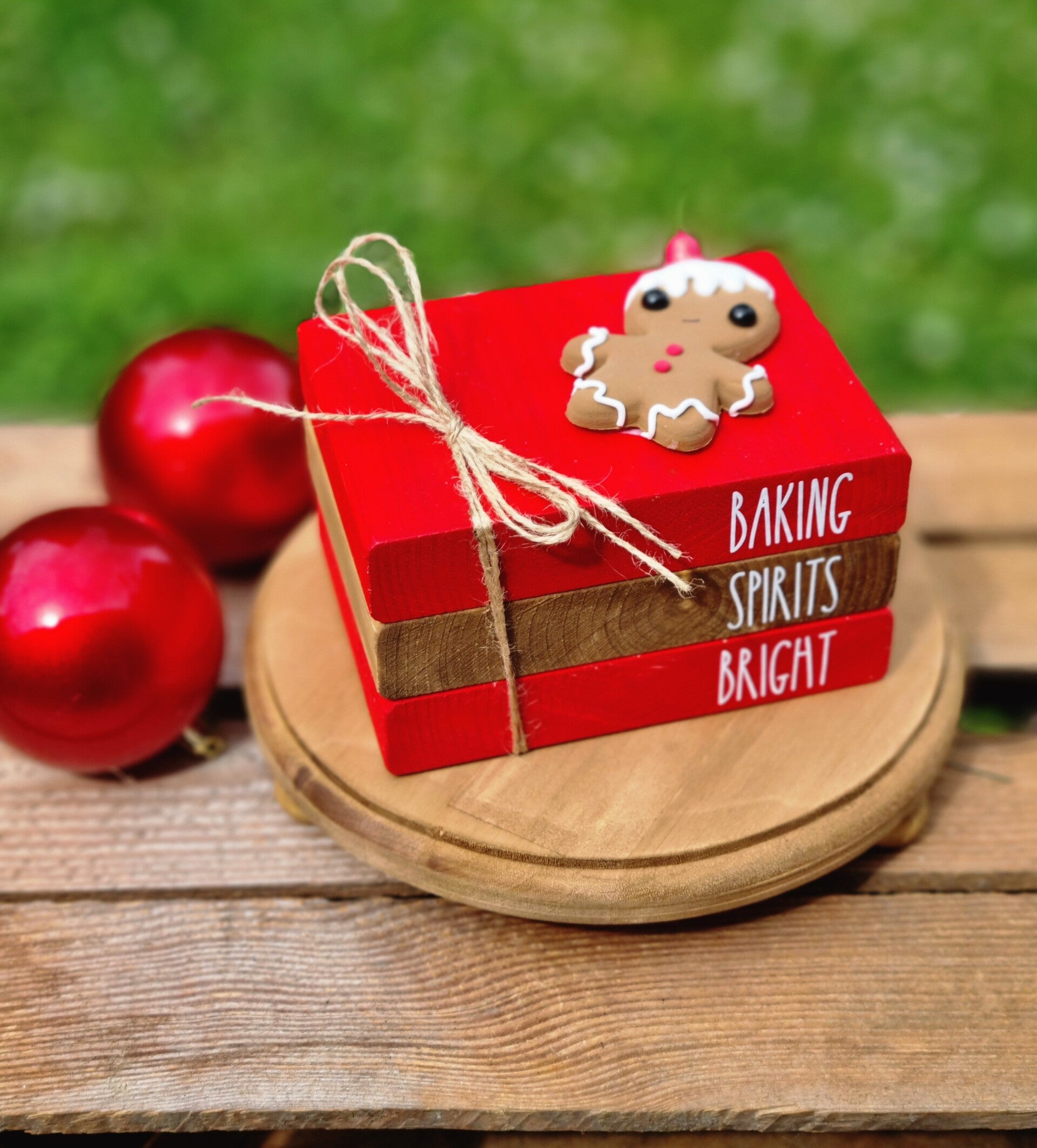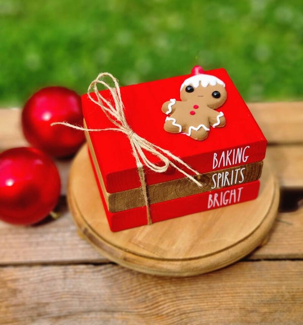 Ein Bücherstapel für Sie Weihnachts Bäckerei mit einem süßen kleinen Lebkuchenmännchen.