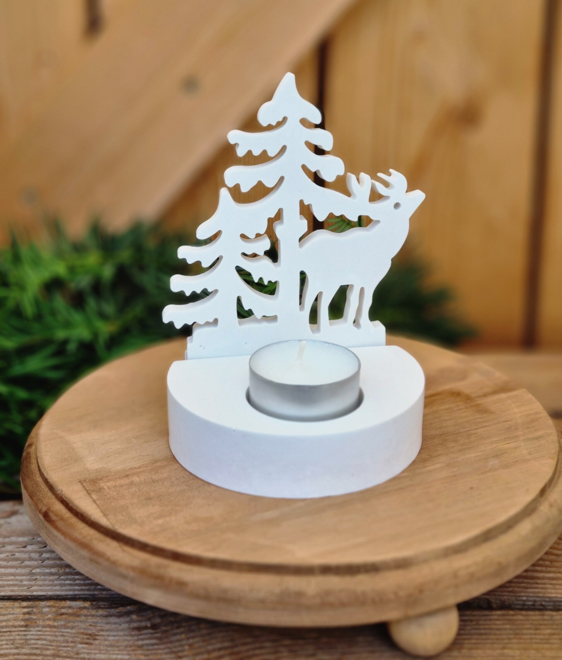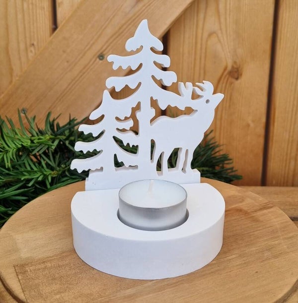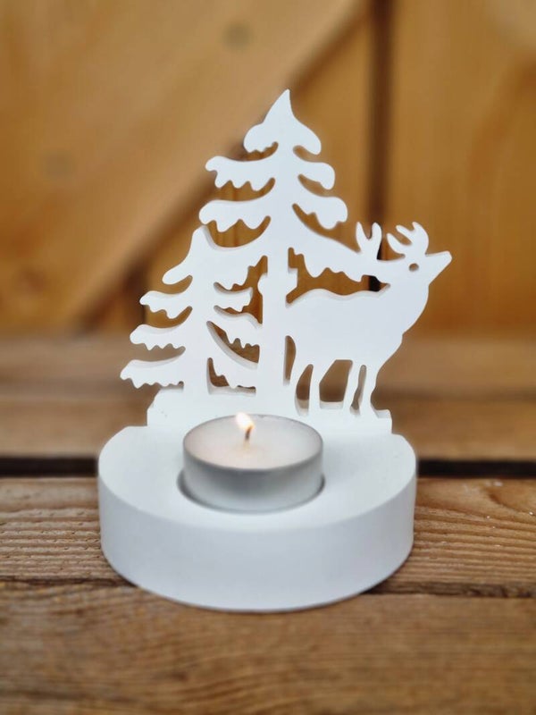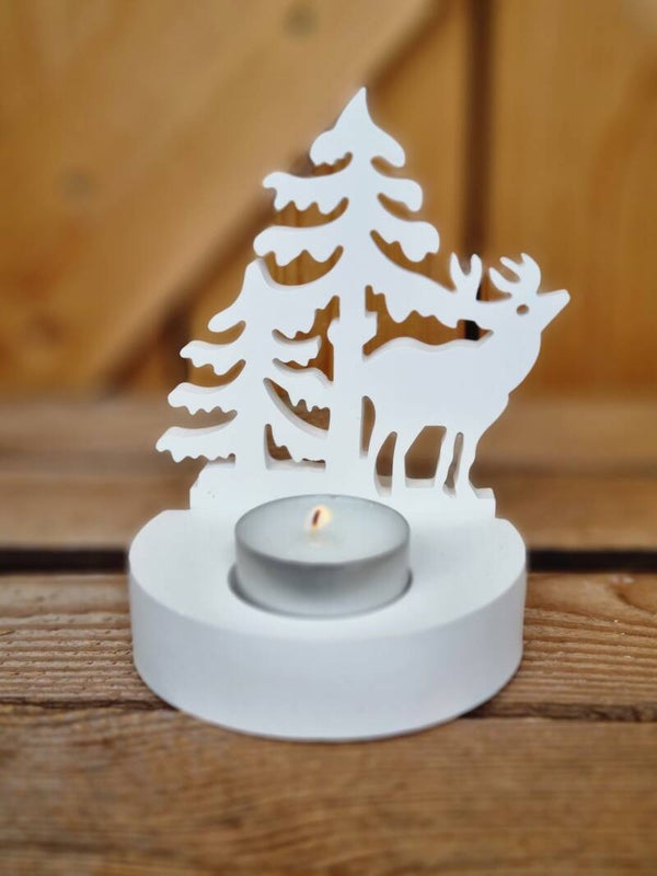 Skandinavische Dekoration Teelicht Halter mit wunderschönen Winter Wald Motiv.