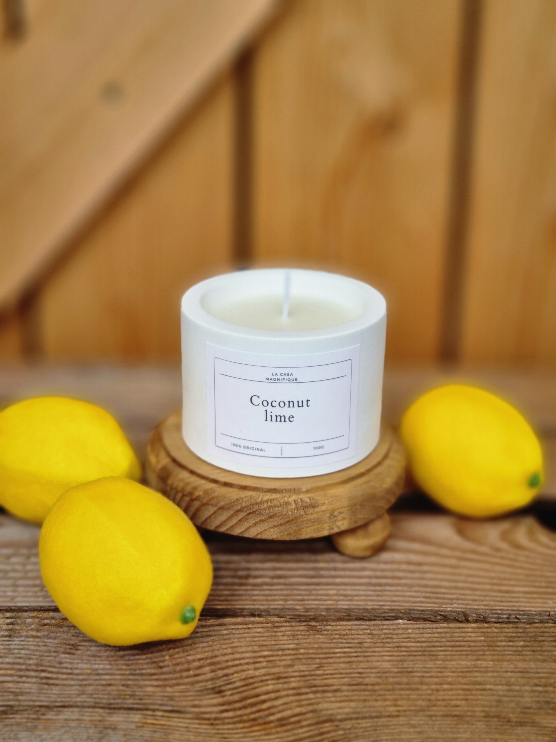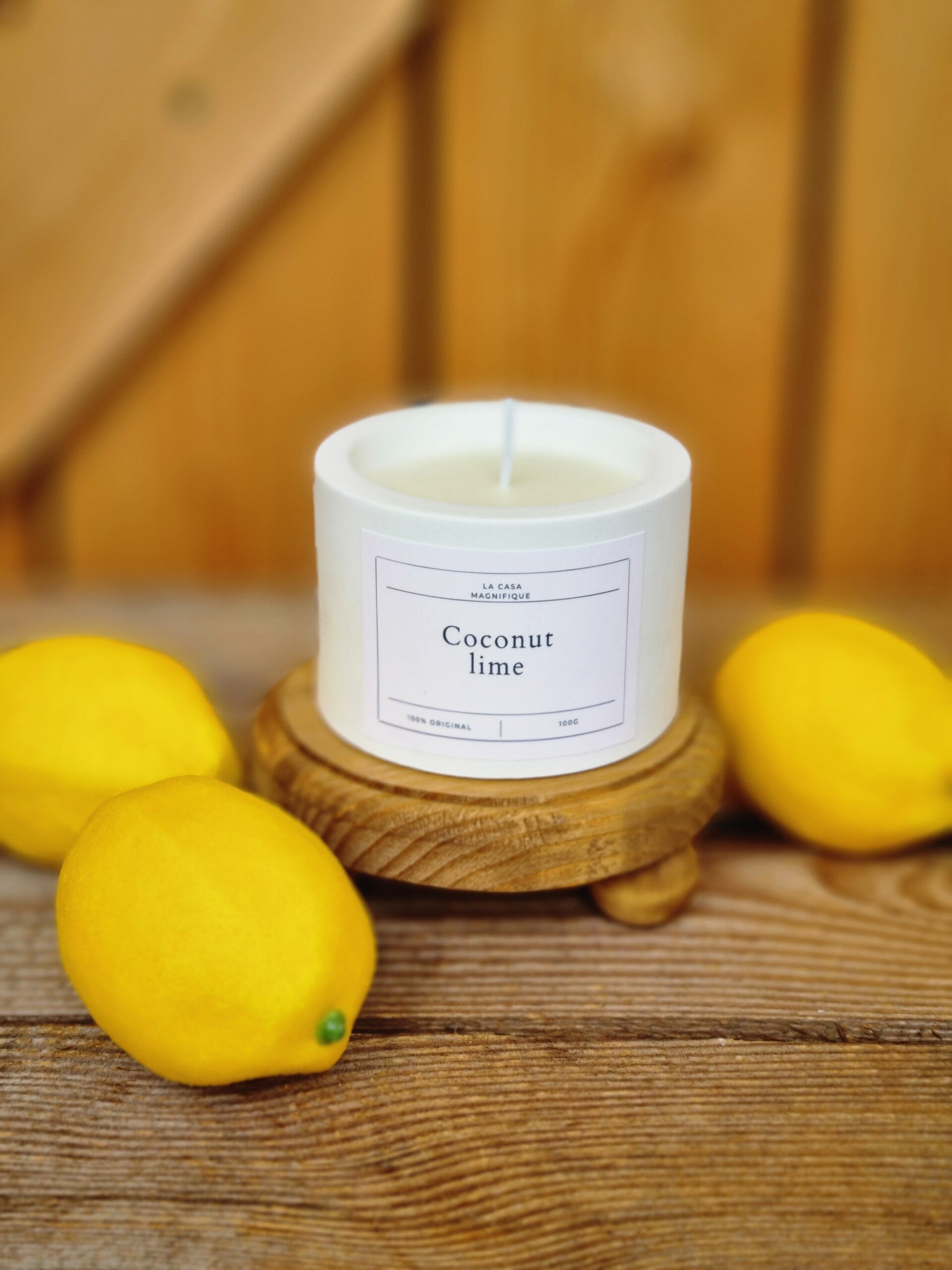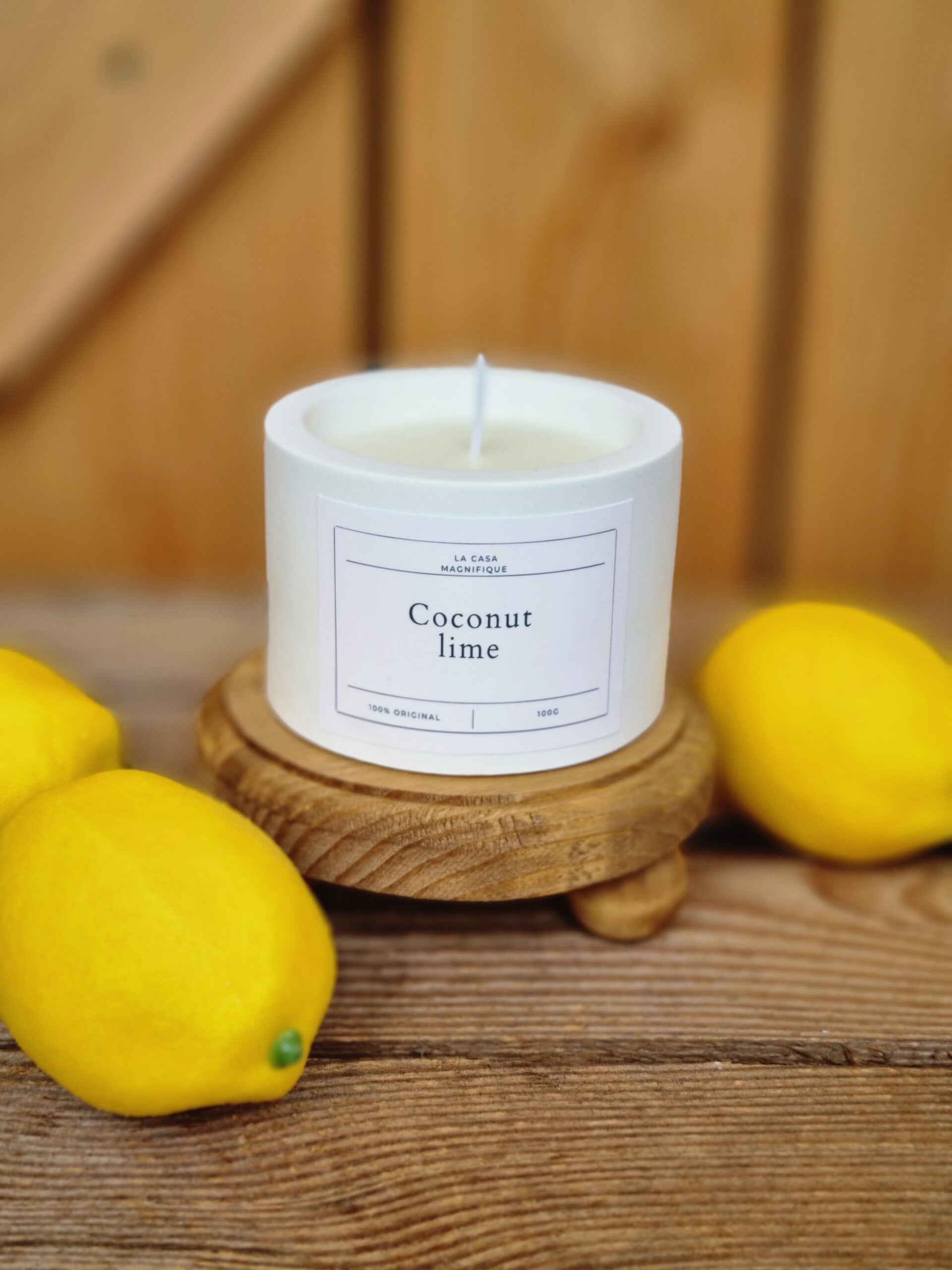 100 g Duftkerze aus Soya Kokosnuss Wachs und natürlichen ätherischen Ölen.