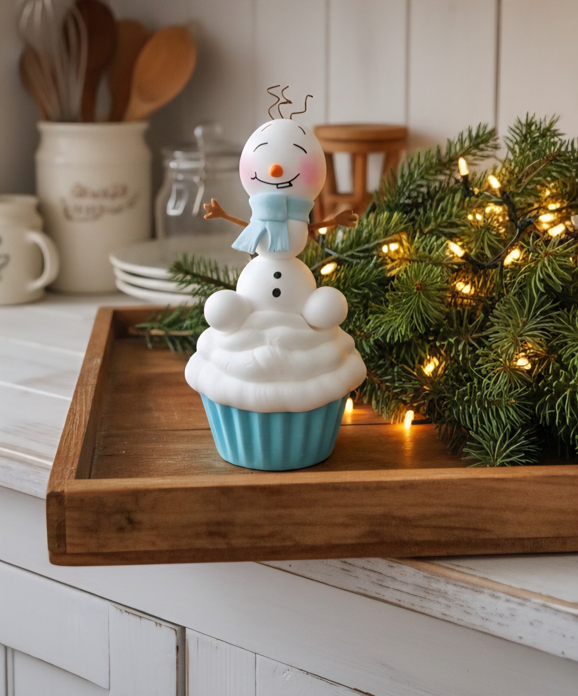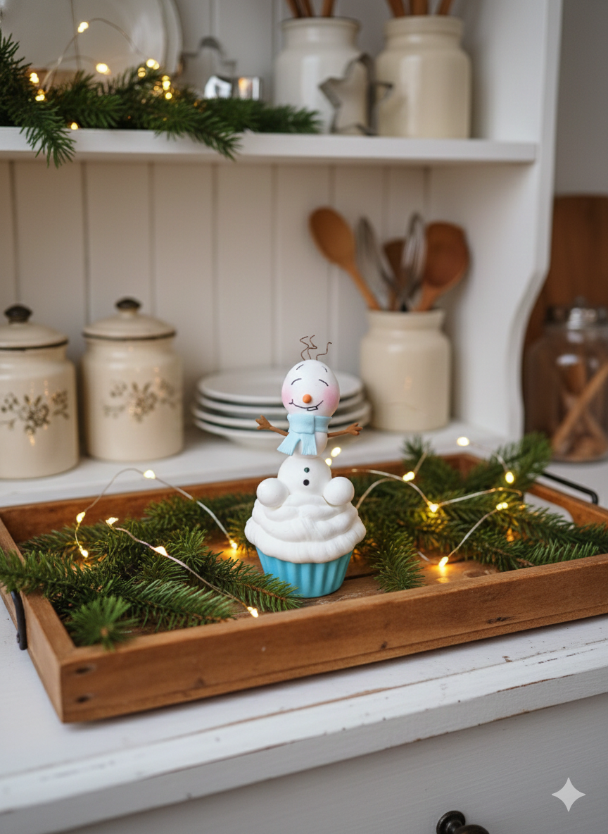 Ein süßer Snowie Junge auf üppigen Schnee Haube Cupkake .