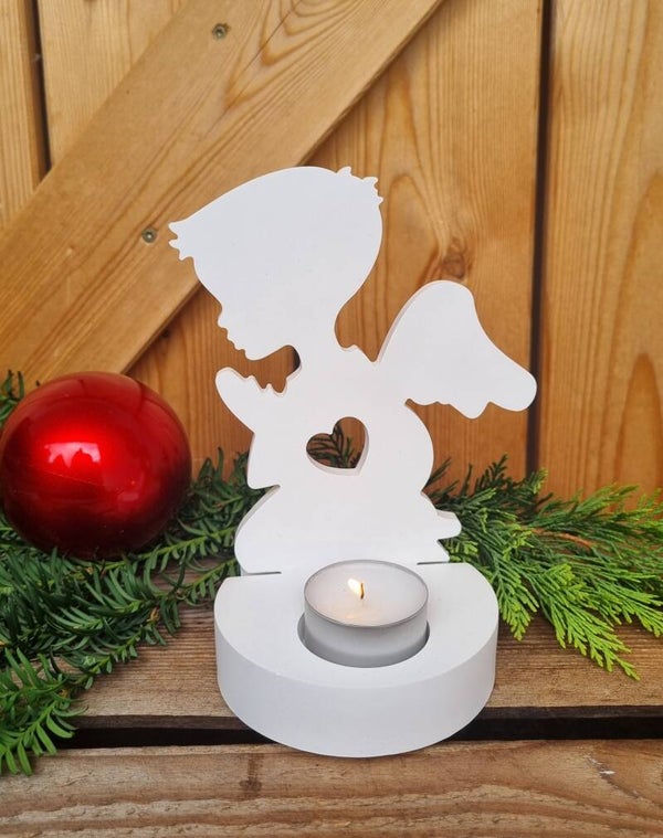 Ein Set aus Teelicht Halter mit einem Engel Jungen Siluette.