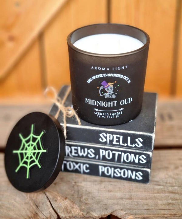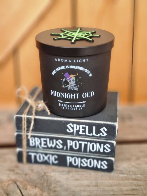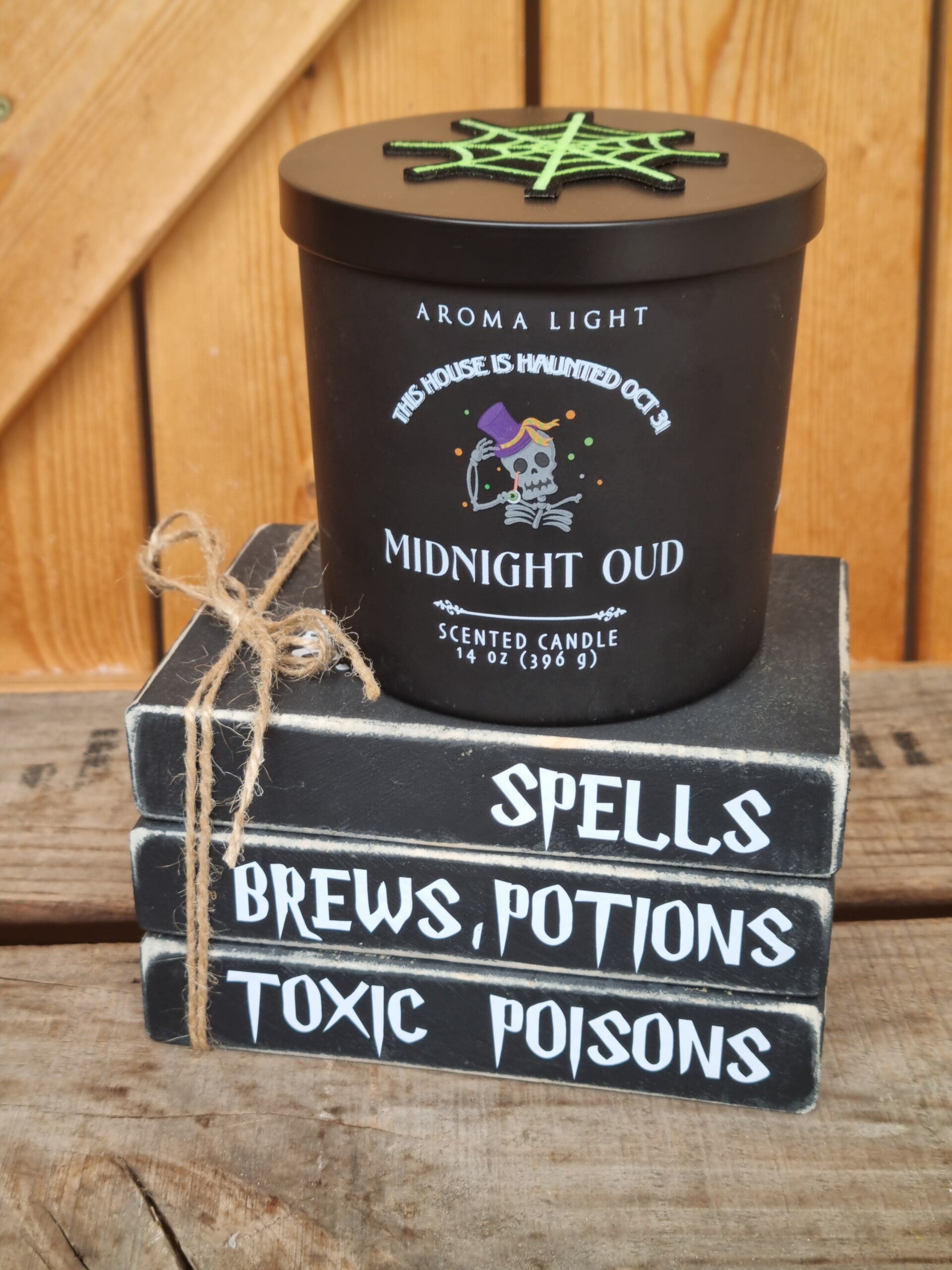 Halloween Dekoration, Set Duftkerze mit Bücherstapel