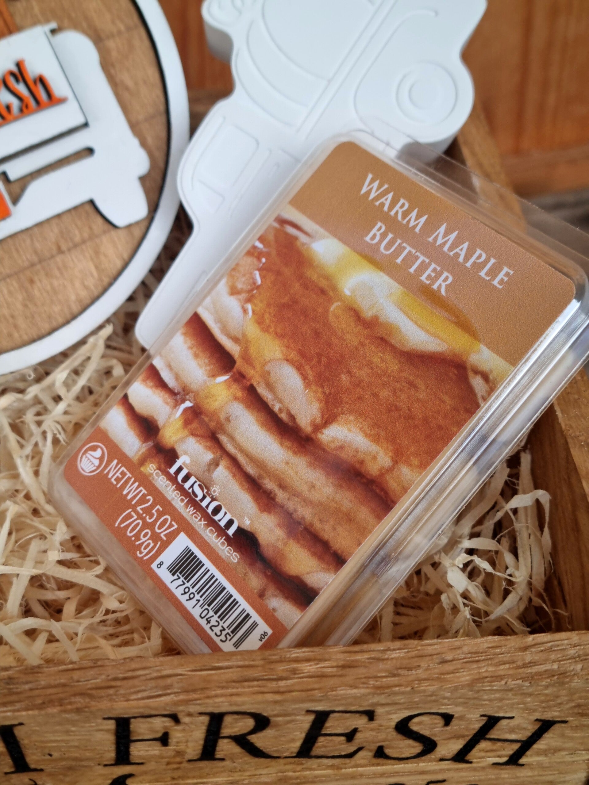 Aus Eichenholz Holz gebeizt, mit Nordic Jack o lantern und einem Nordic pumpkin Truck, sowie ein pumpkin Truck Holz Schild und aus den USA meine Lieblings Melts Marke ,hier in Warm Marple Butter Duft Richtung.