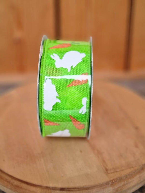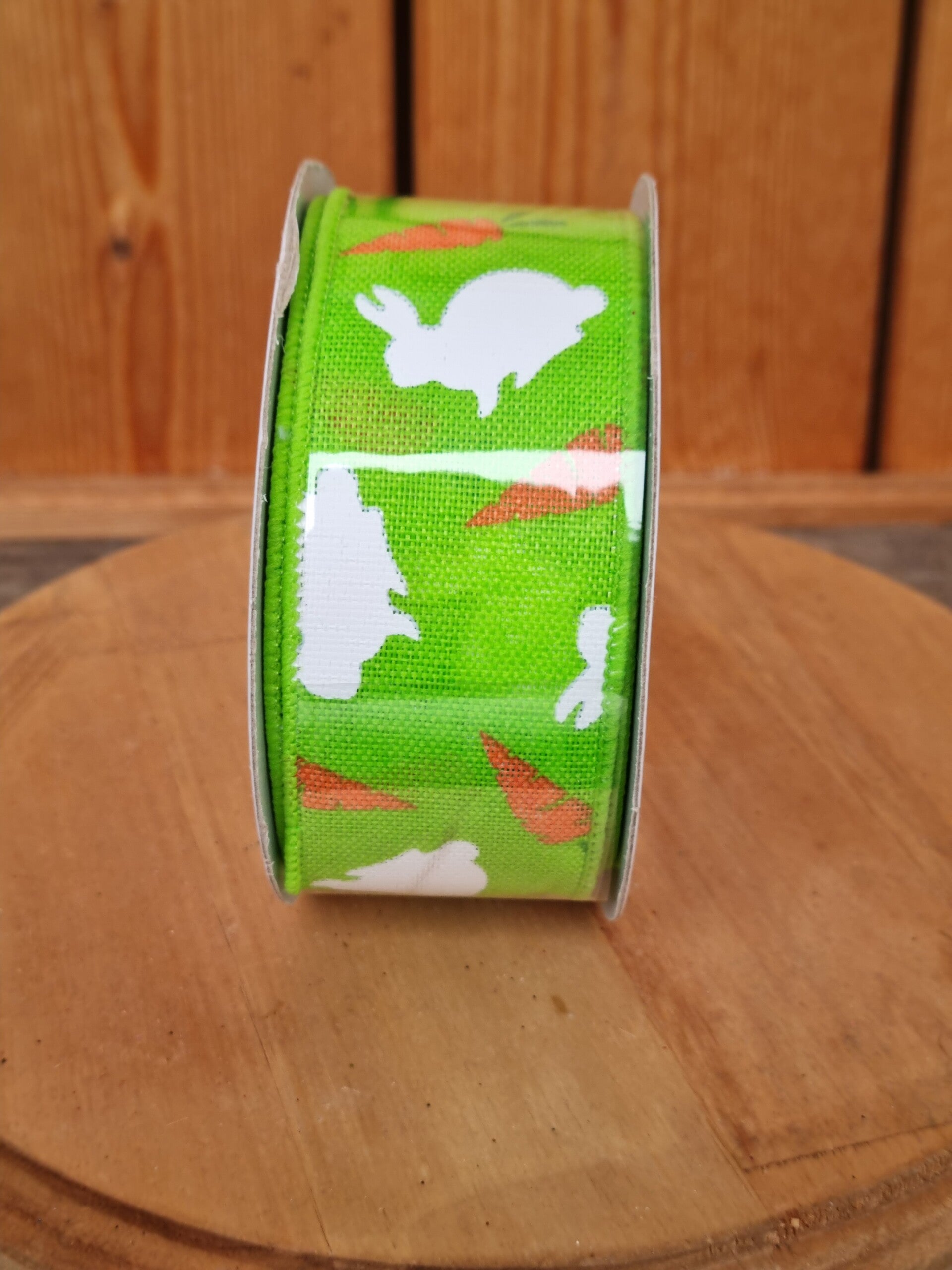 In 4cm x 9m ein ganz tolle Schleifenband mit orangenen Möhrchen und süßen weißen Bunnies.