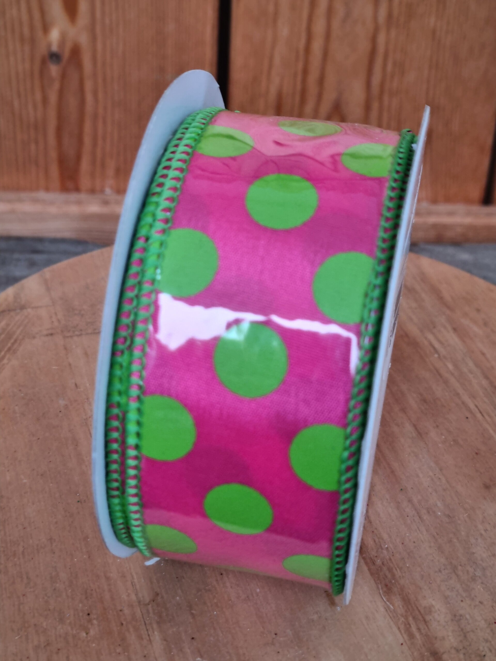 Hier saftig grüne mittelgroße Punkte auf pinkem Hintergrund.