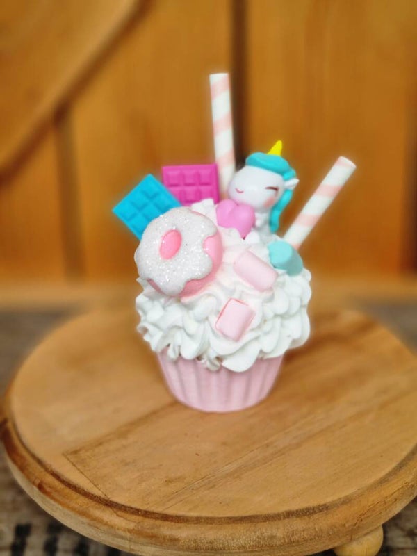 Ein Fake cupkake in Unicorn Thema ,perfekt als Geschenk für Einhorn Fans, ideal als Geburtstag Geschenk.