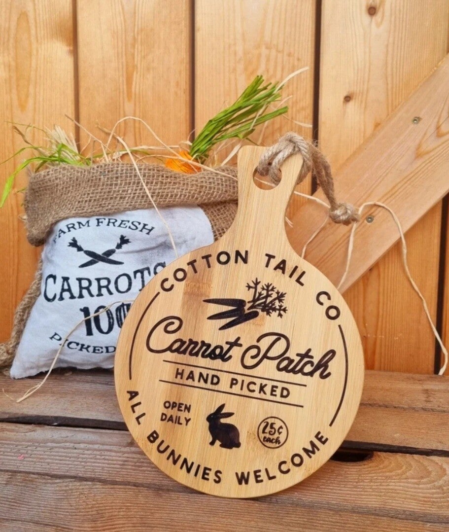 In Landhausstil ein Bambus Natur Schneidebrettchen mit dem typischen Farmhouse Still Aufschrift als Laser Gravur.24cm x17 cm.Perfekt für die Farmhouse Osterküche.