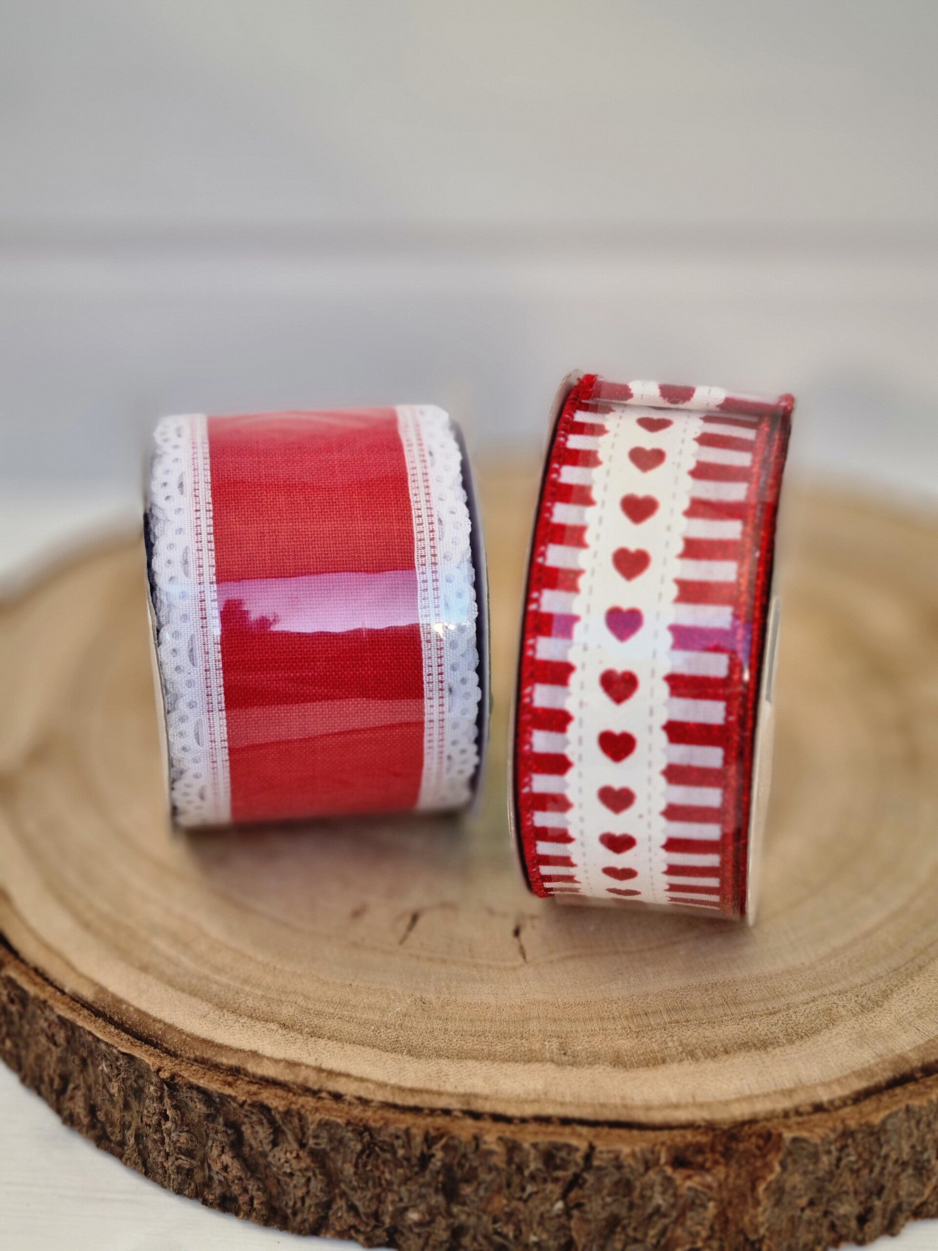Mit Glitzer abgesetzt, sattes rot mit Weiß und einem Spitzenband in der Mitte.