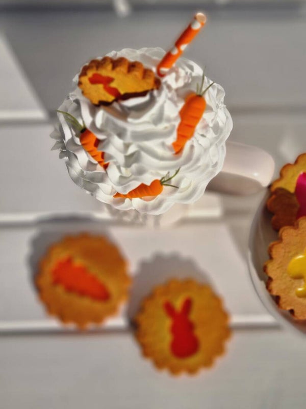 Ein kleines Möhren cookie aus Mürbeteig und drei Mellow Carrots.