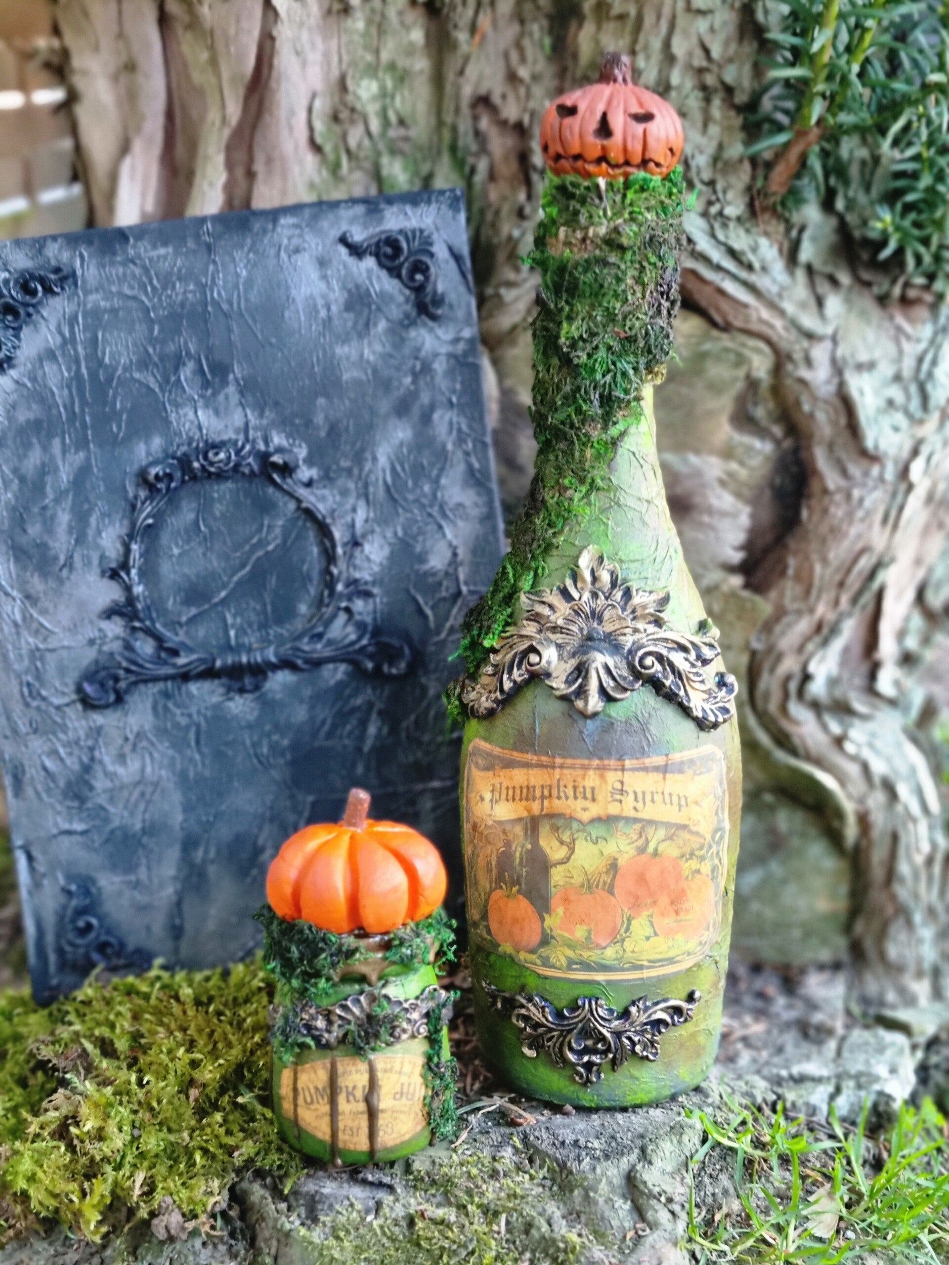 Set aus zwei pumpkin Themen Halloween Flaschen.