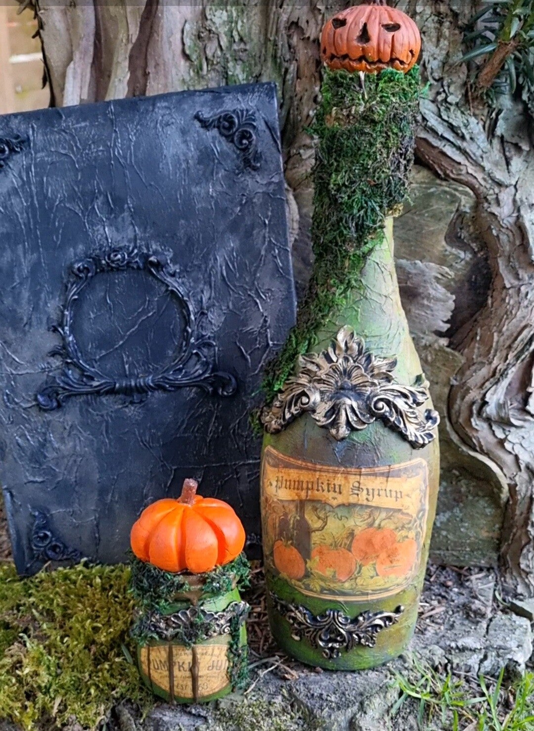 Set aus zwei pumpkin Themen Halloween Flaschen.