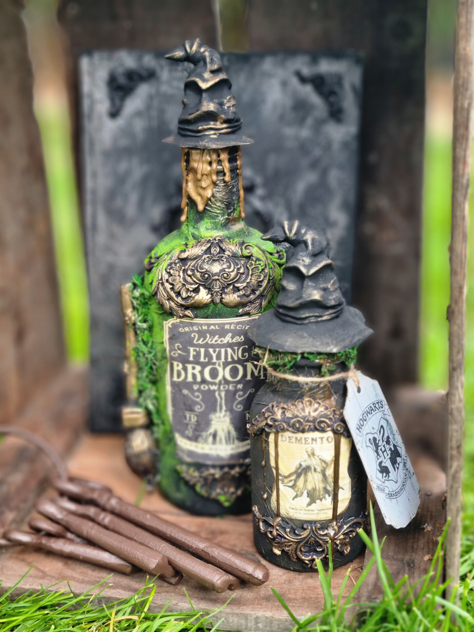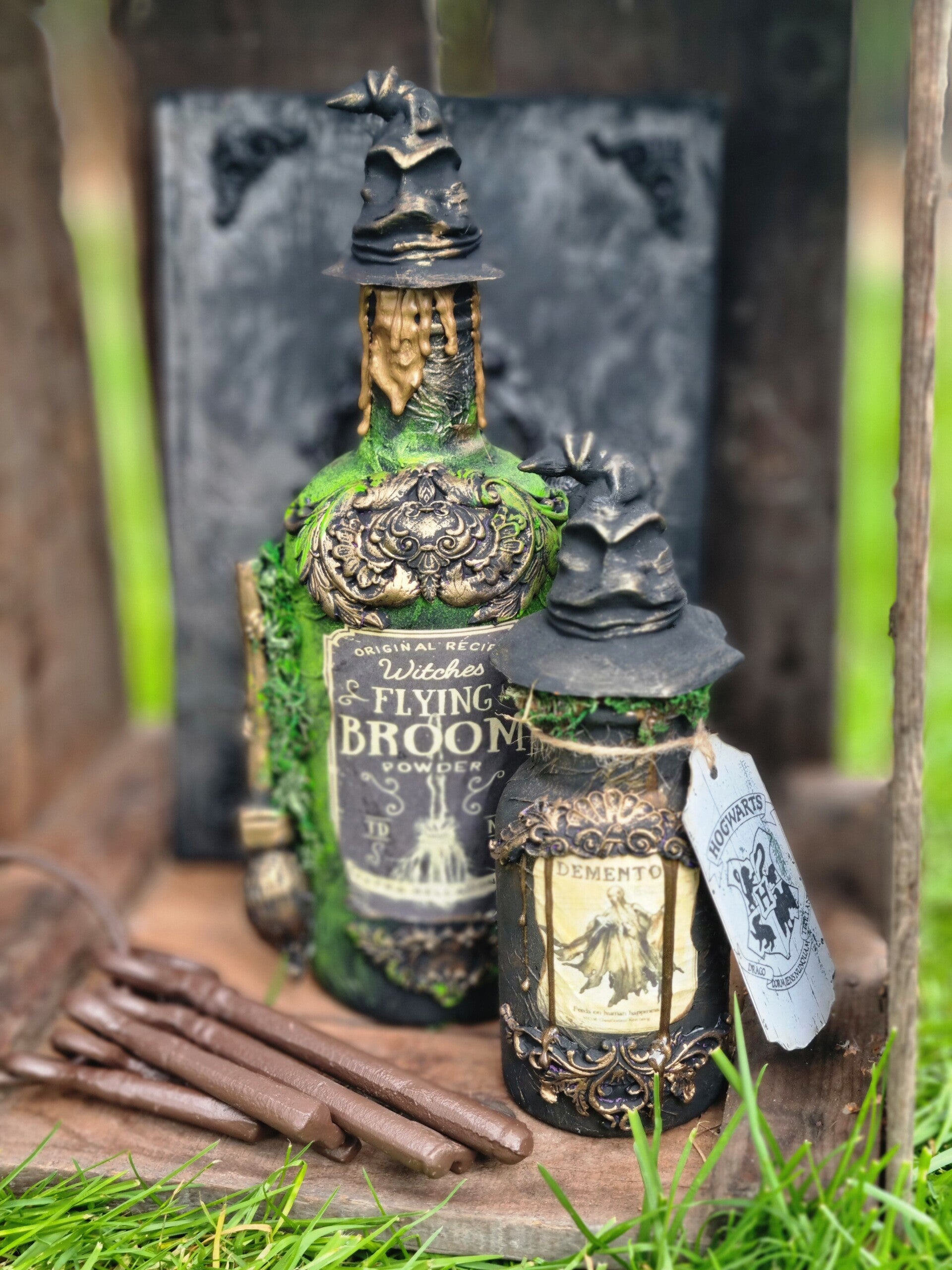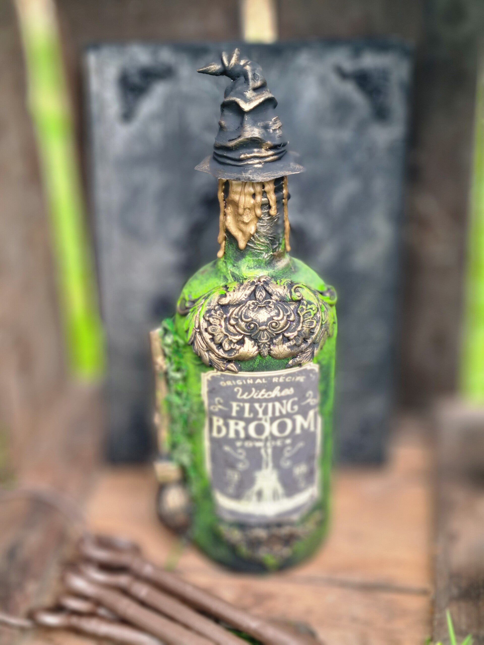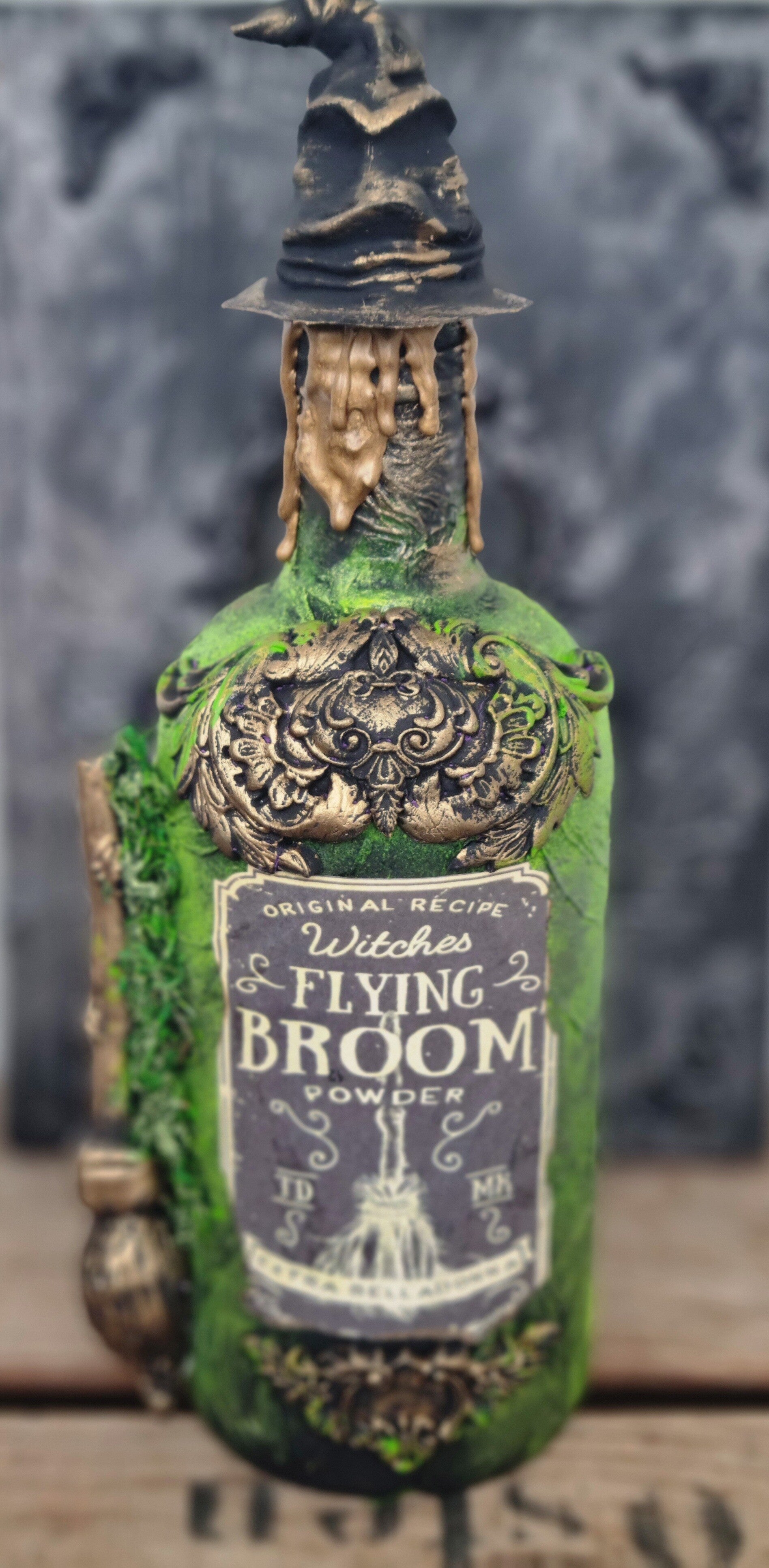 Aufwendiger gearbeiteter Design, mit barocken Ornamenten ,Sorting hat als Versiegelung, in Wald Farben mit mystic Touch.