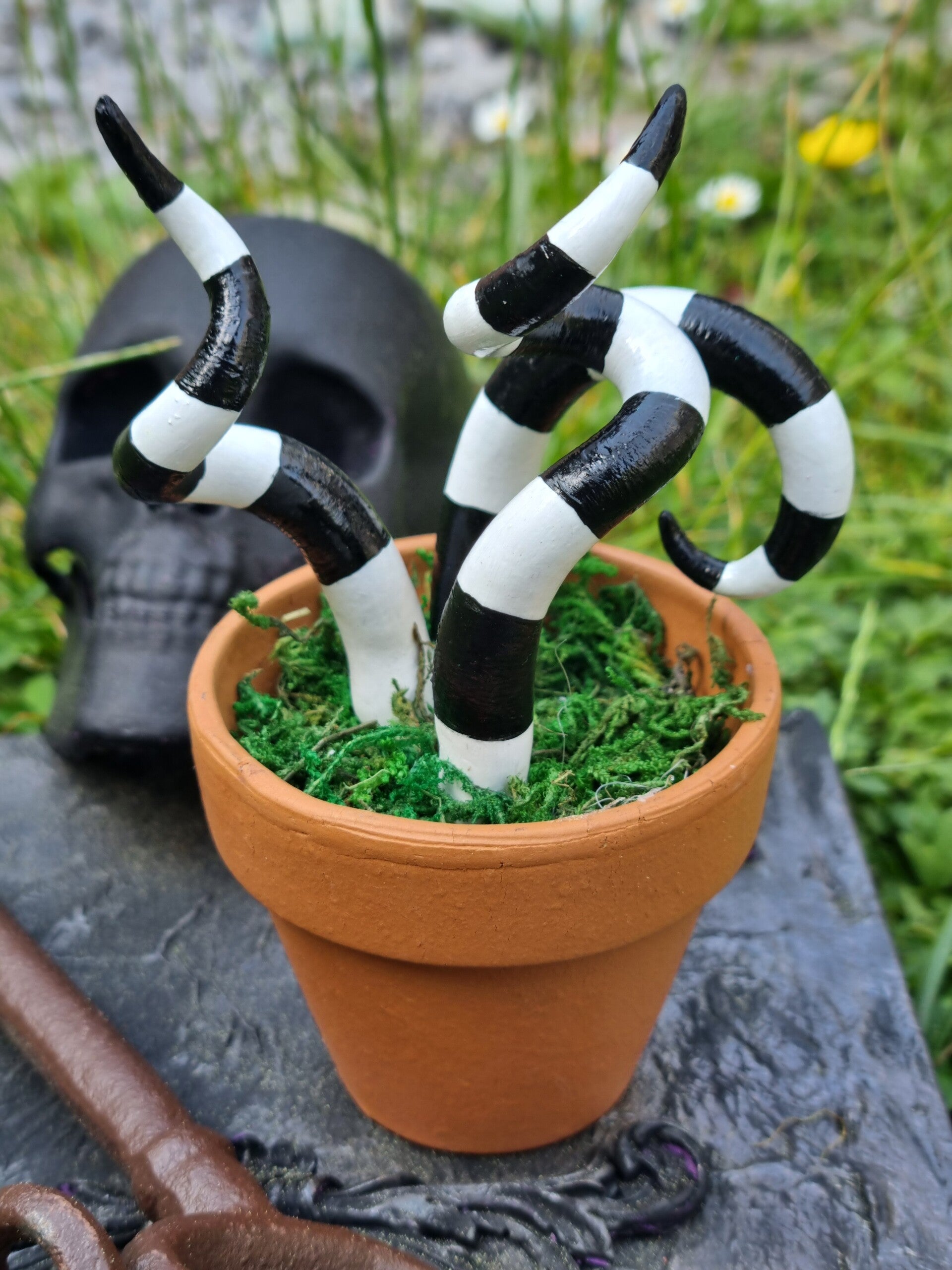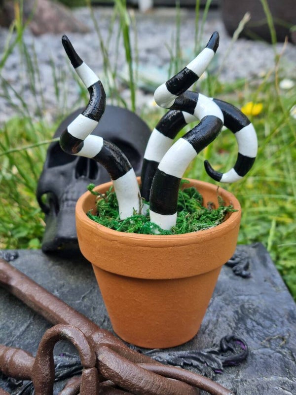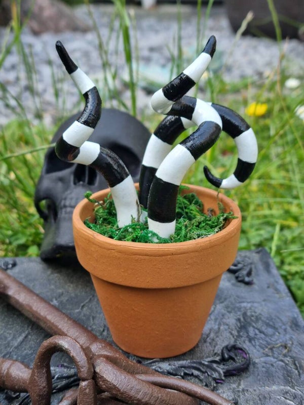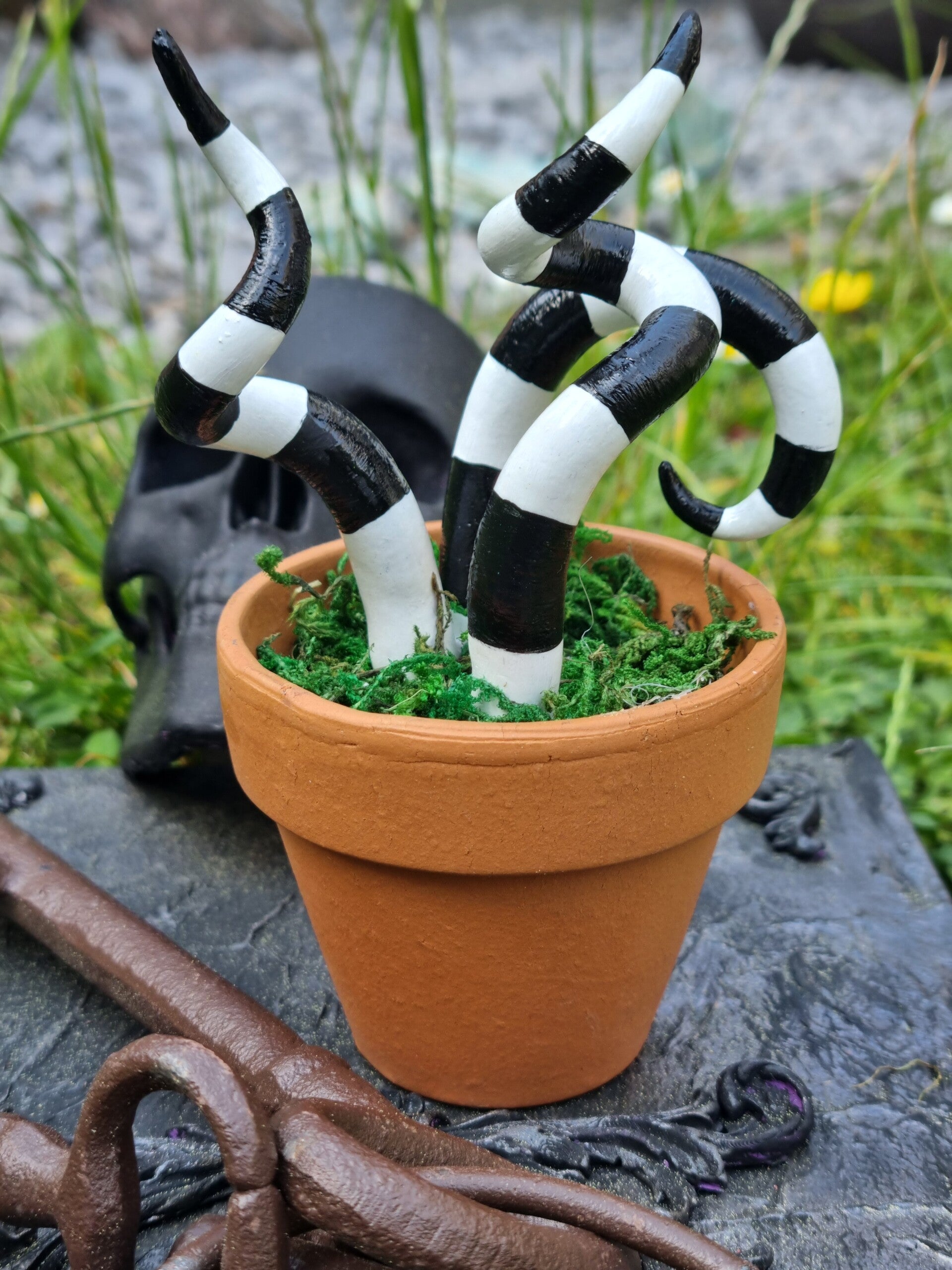 Beetlejuice Beetlejuice Beetlejuice 🙈🙈🙈oh nein !!!Hier ein Ton Topf mit tauchenden Sandwürmern.Ein cooles Hallo Dekoelemente. Die Höhe ca.14 bis 15 cm .