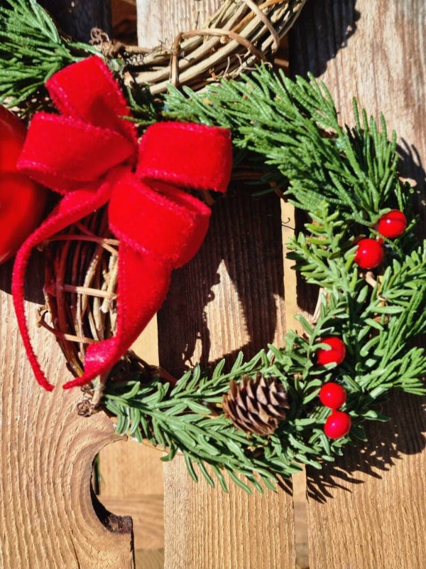 Zur Auswahl ein 15 cm Durchmesser oder ein 17 cm Durchmesser Kranz, hand angefertigt aus weiden Zweigen .