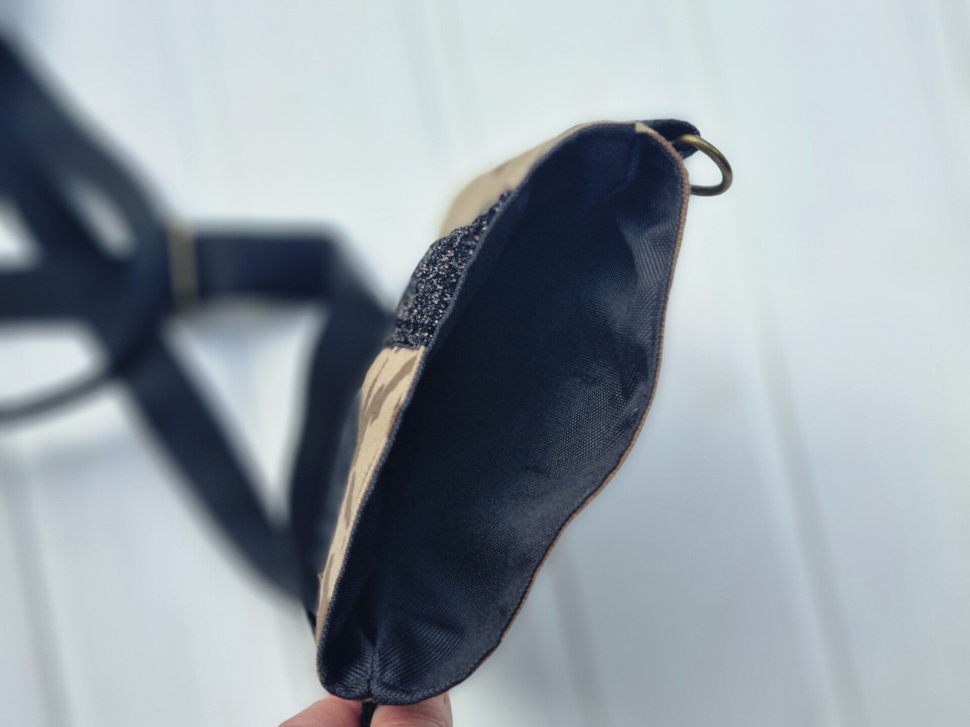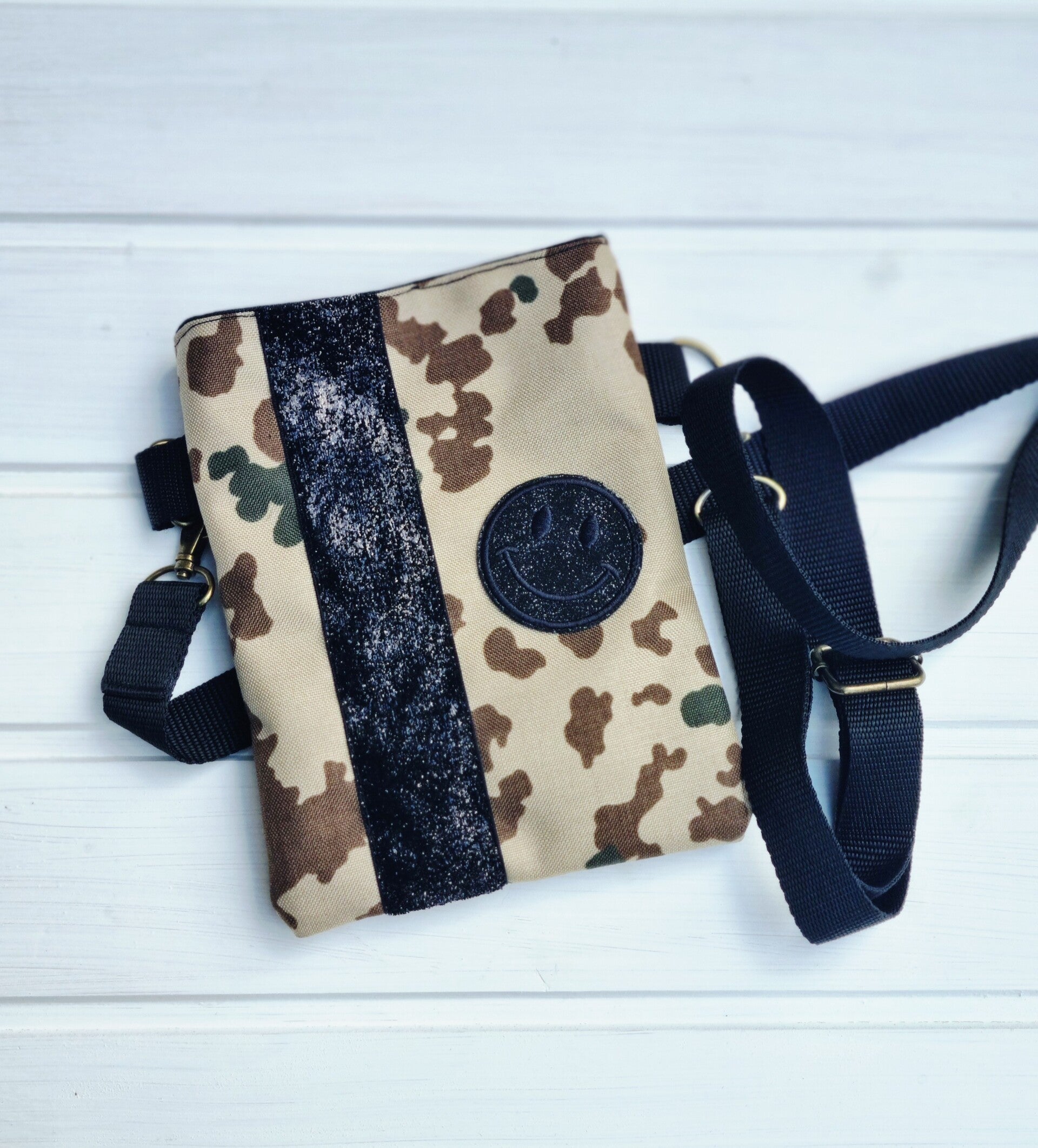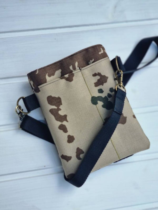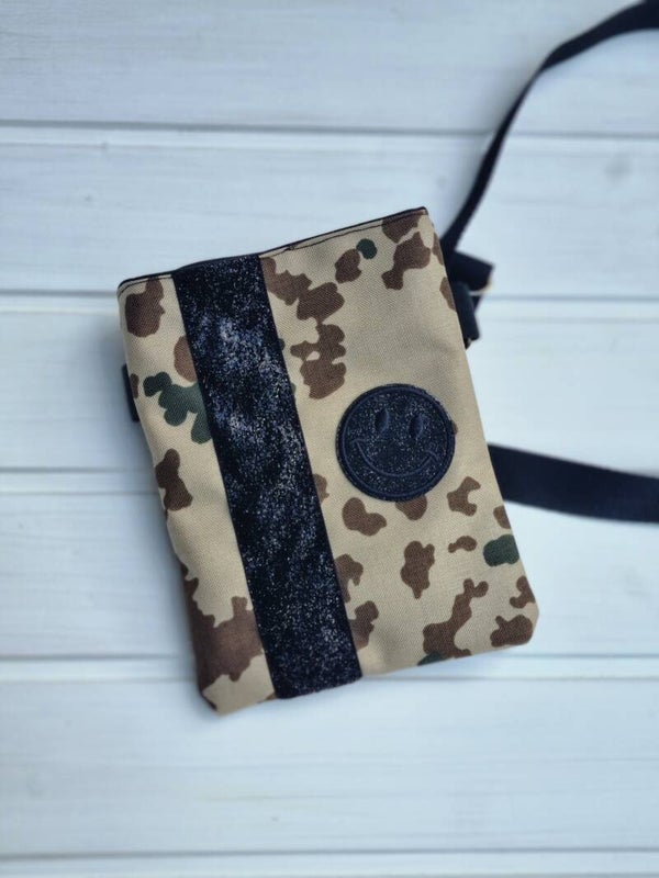 Ein Hunde Leckerbeutel aus Wasserabweisenden Wüsten Camouflage Stoff mit schwarzen Applikationen.
