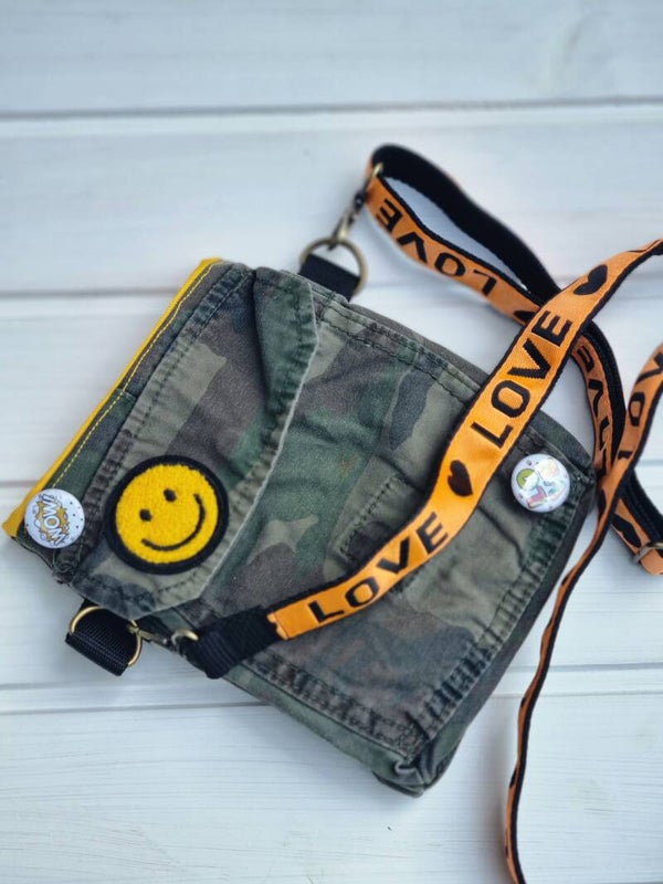 Aus upcycling Material mit fröhlichen Patches, frischen Farben und natürlich den besten vibes Love and Smile ❤️😊😃