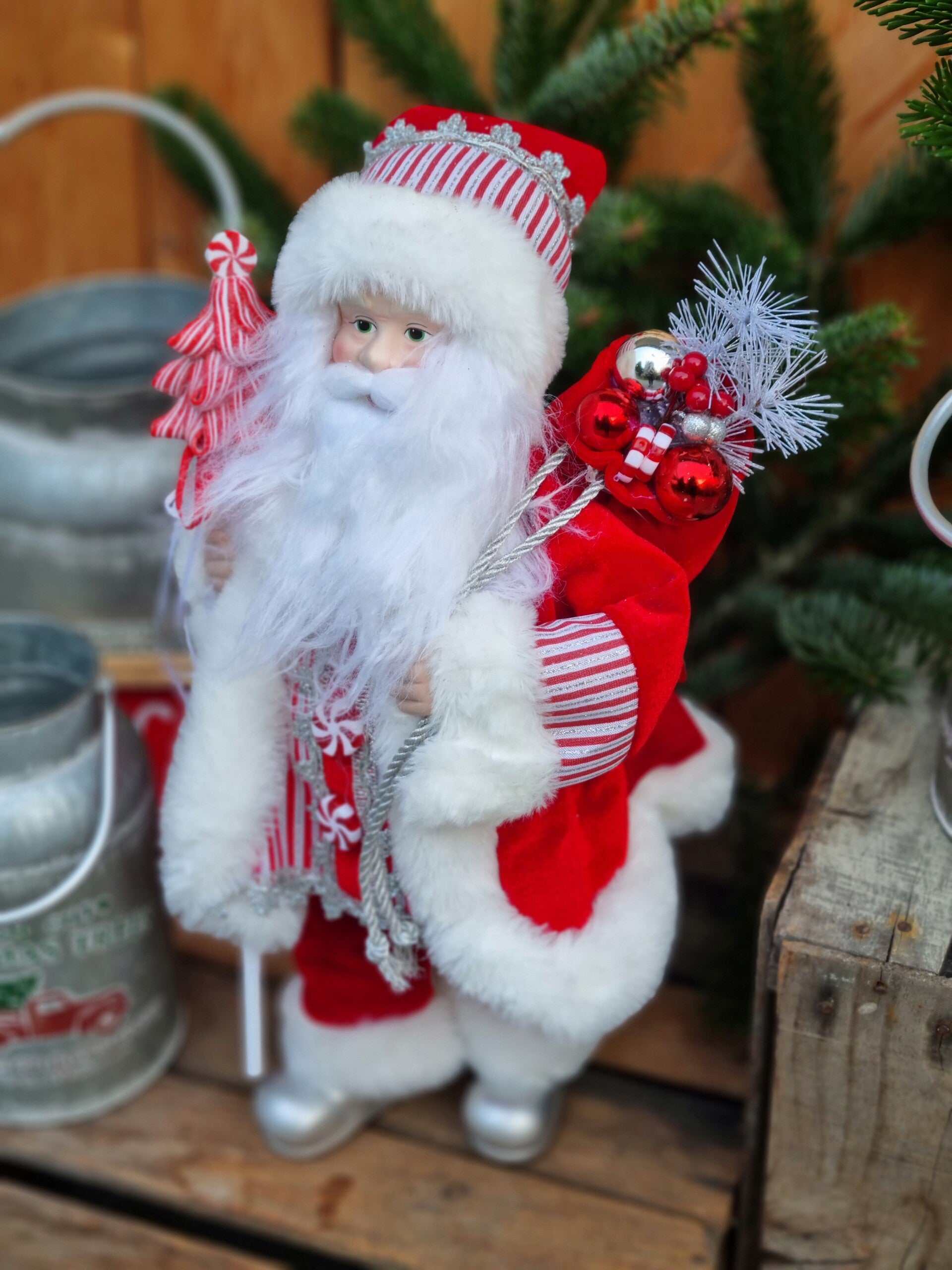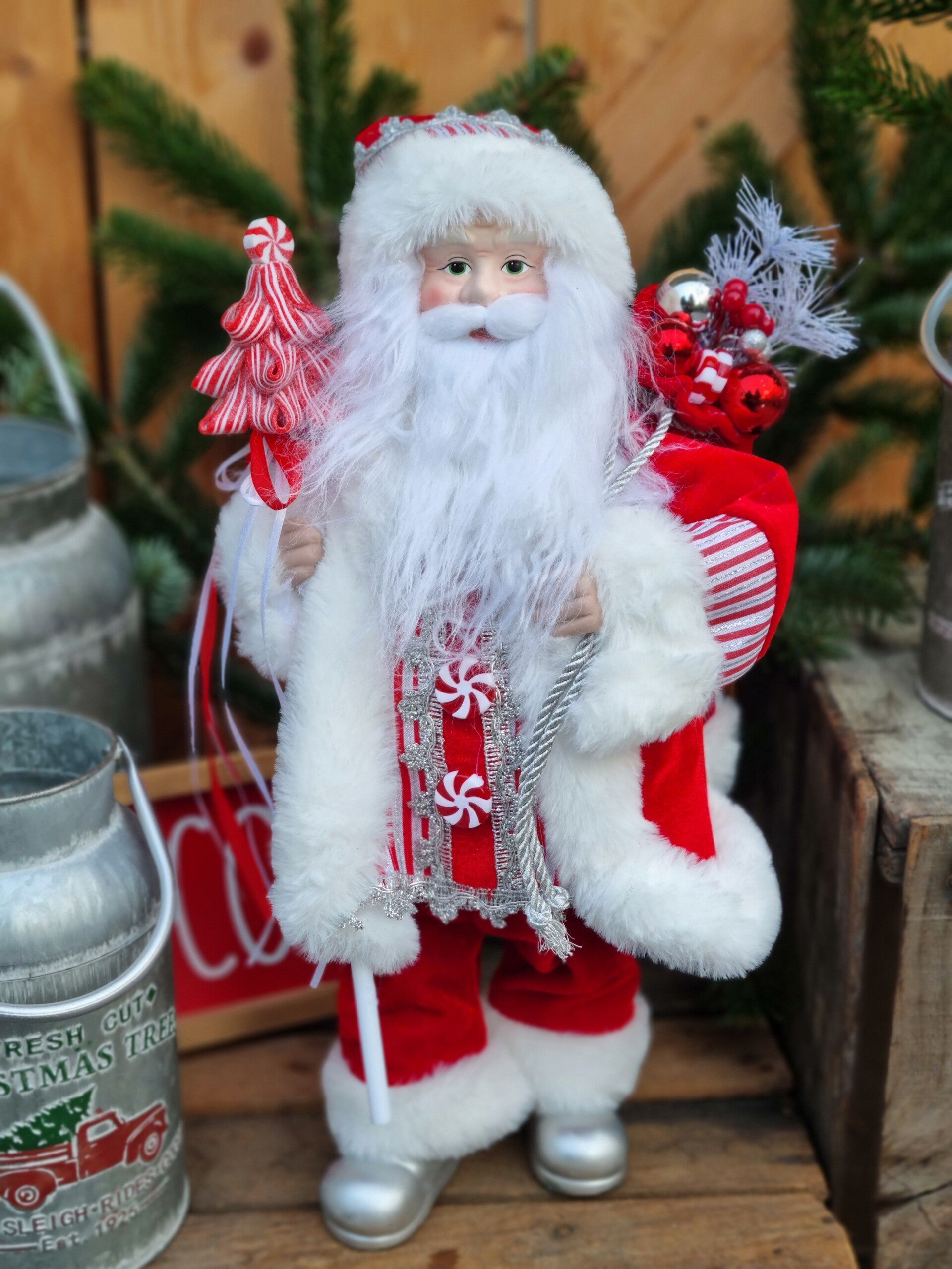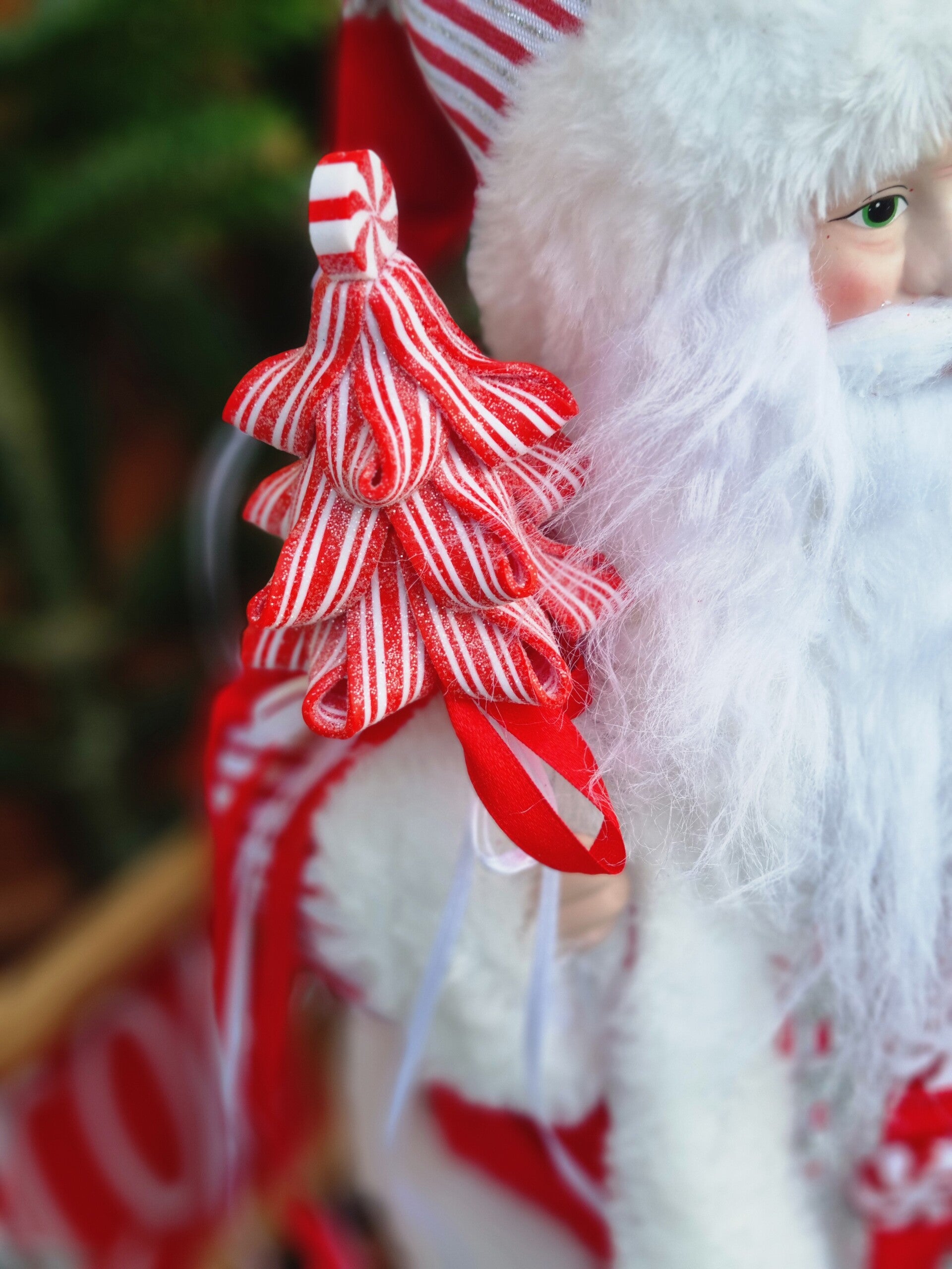 Der Weihnachtsmann hat einen Geschenke Sack i Weihnachts rot, sowie einen Peppermint lollipop in Tannen Baum Peppermint look.
