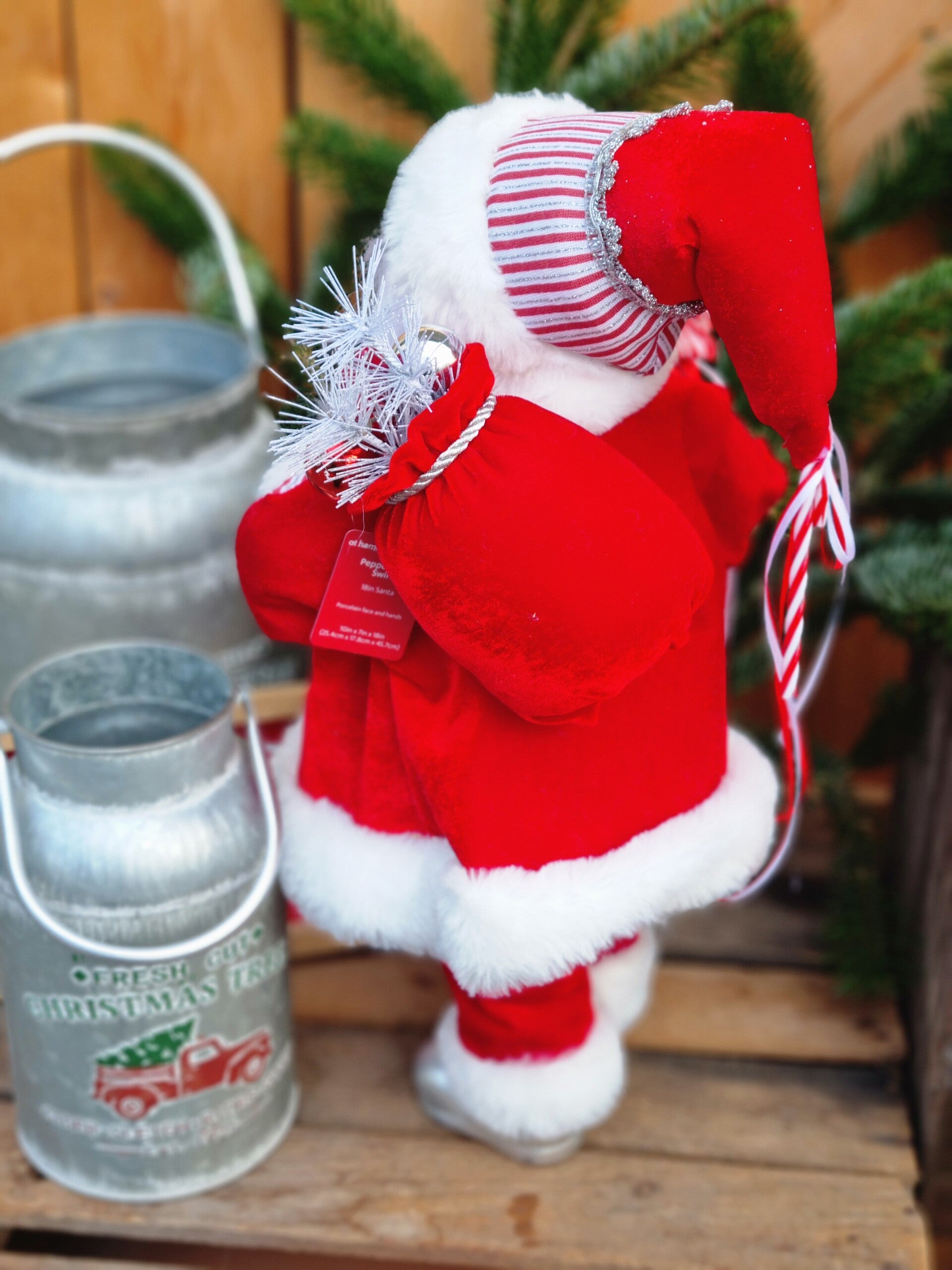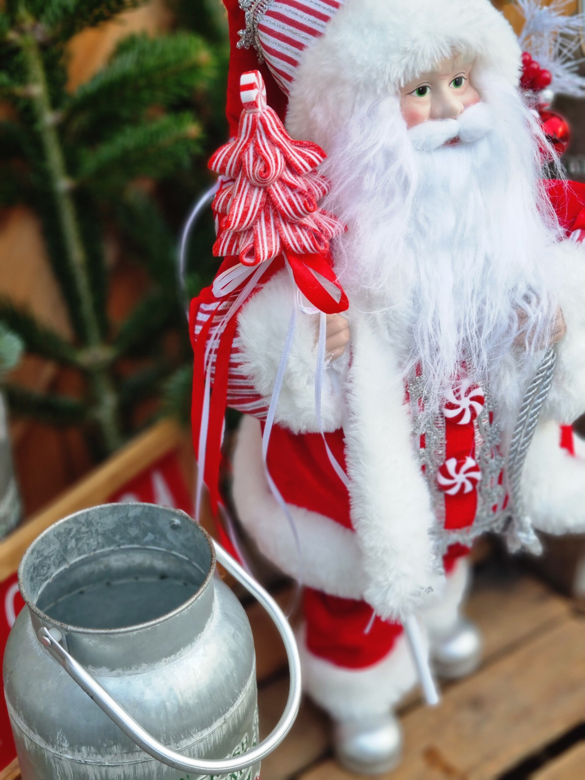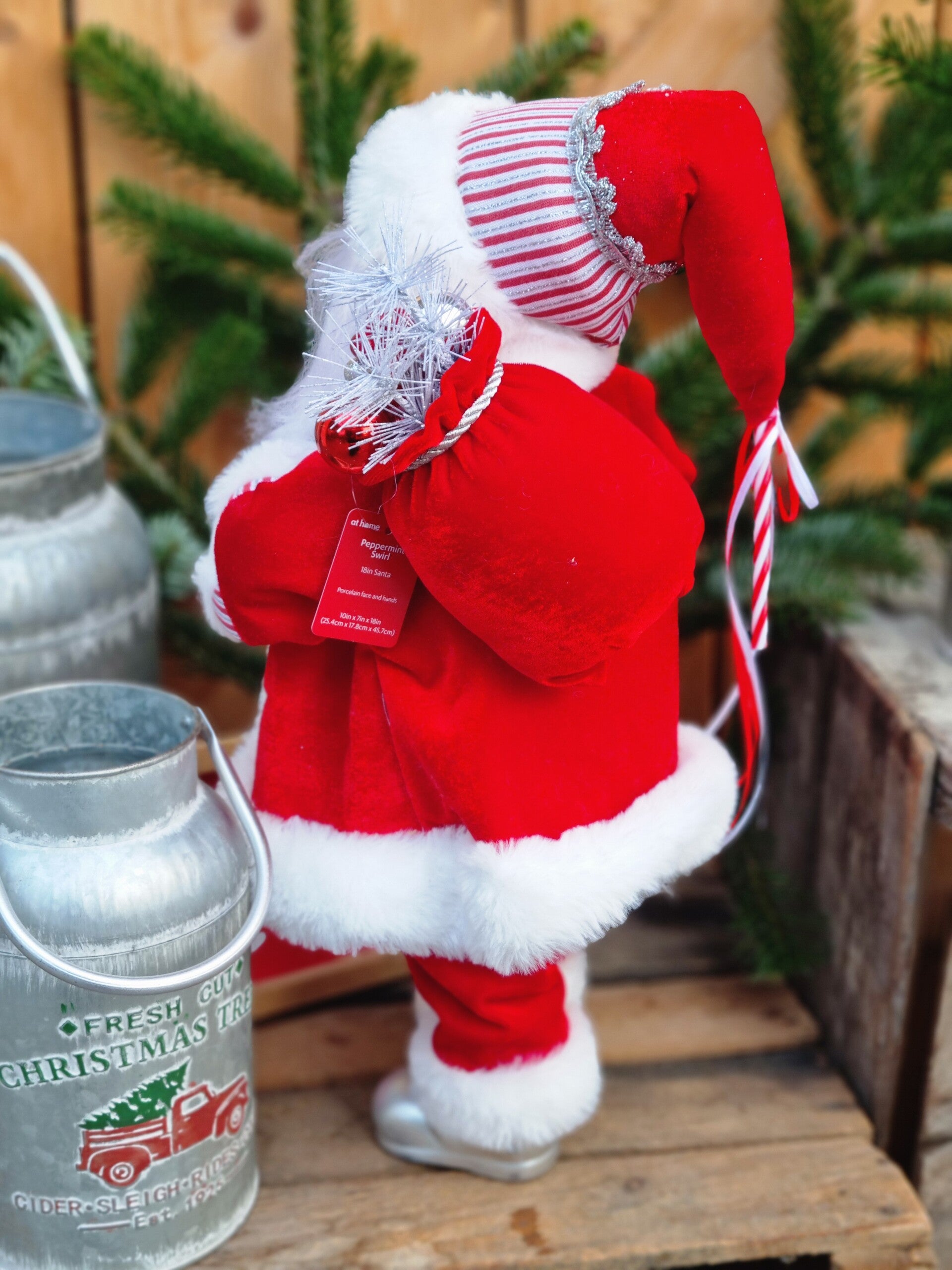 Der Weihnachtsmann hat einen Geschenke Sack i Weihnachts rot, sowie einen Peppermint lollipop in Tannen Baum Peppermint look.
